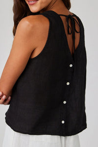 Stay cool and stylish with our must-have Sleeveless Button Back Top. Made from lightweight and breathable linen, this top is perfect for warm weather. The elegant button back adds a touch of sophistication to your look. Feel comfortable and chic all day long!
