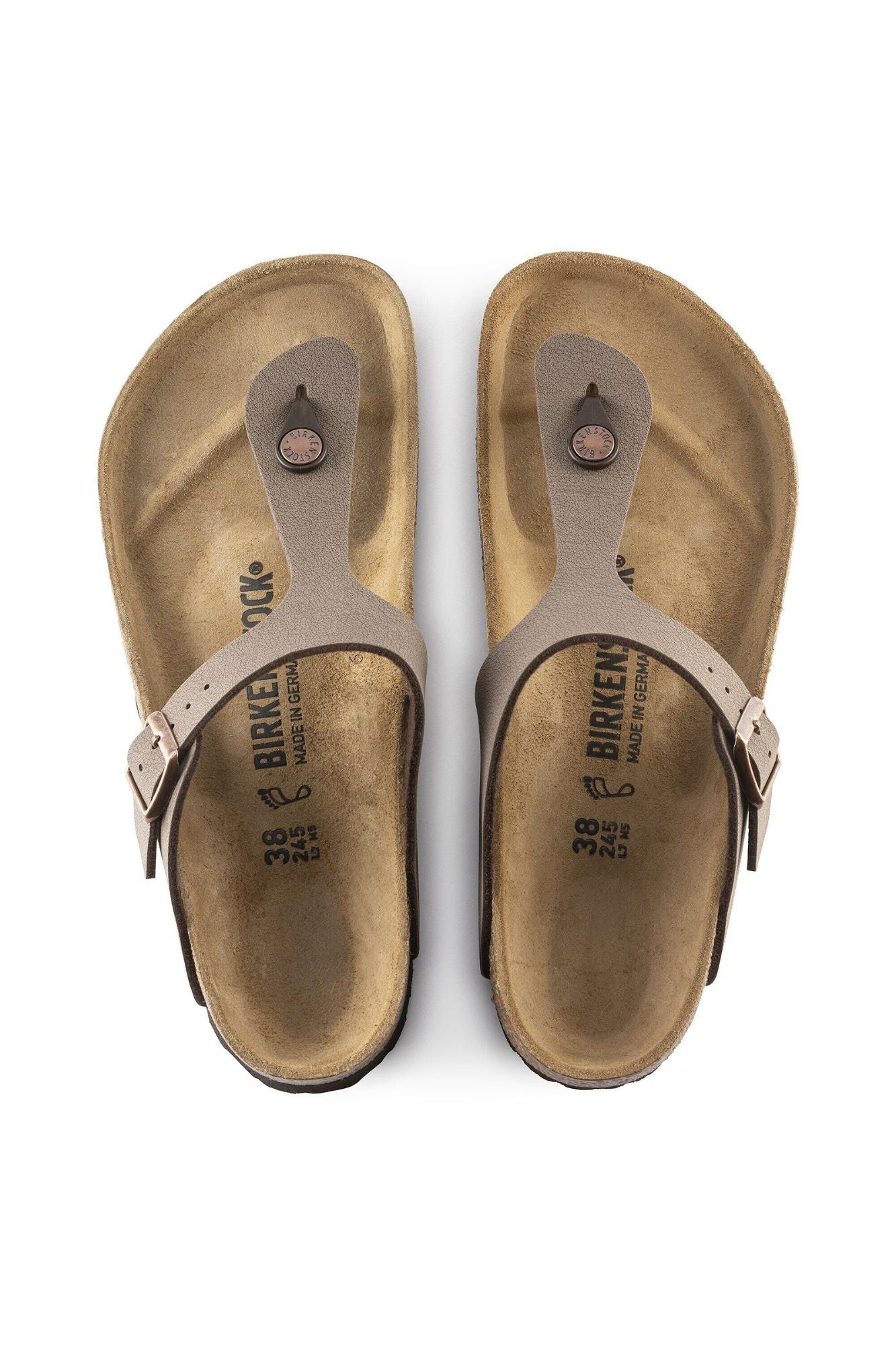 The BIRKENSTOCK Gizeh is a genuine classic and a stylish all-rounder. Our elegant thong sandal combines optimum grip with minimalist, fashionable design. The upper is made from the skin-friendly, hard-wearing synthetic material Birko-Flor® in a sophisticated nubuck look which boasts a texture and color that could almost be mistaken for real leather.