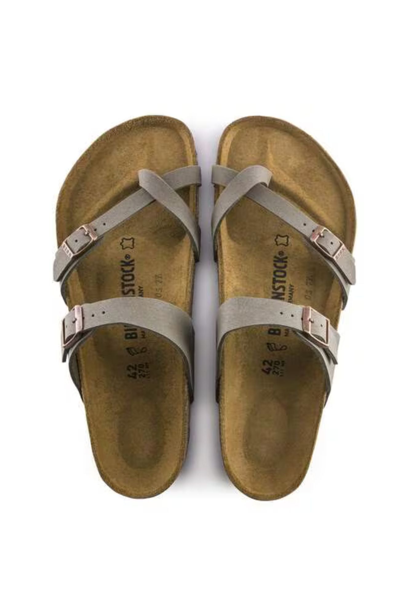 Supremely comfortable with sophisticated, crisscross straps, the Mayari redefines the thong sandal with a single toe loop. Birko-Flor® adds a smooth finish to the everyday favorite. Complete with classic BIRKENSTOCK design elements, like adjustable buckle closures and a contoured footbed for the ultimate in support.