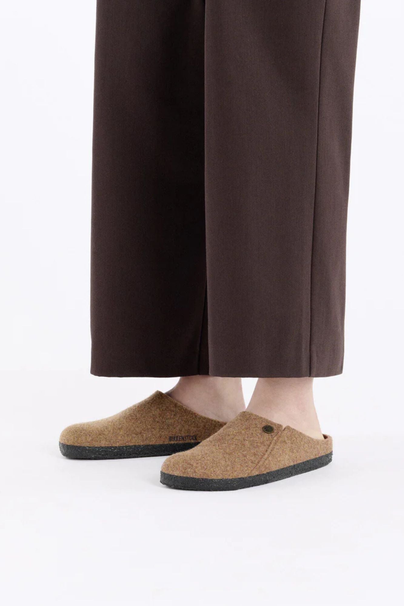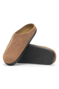 Wool felt upper, Leather insole, Cork footbed, Latex sole.