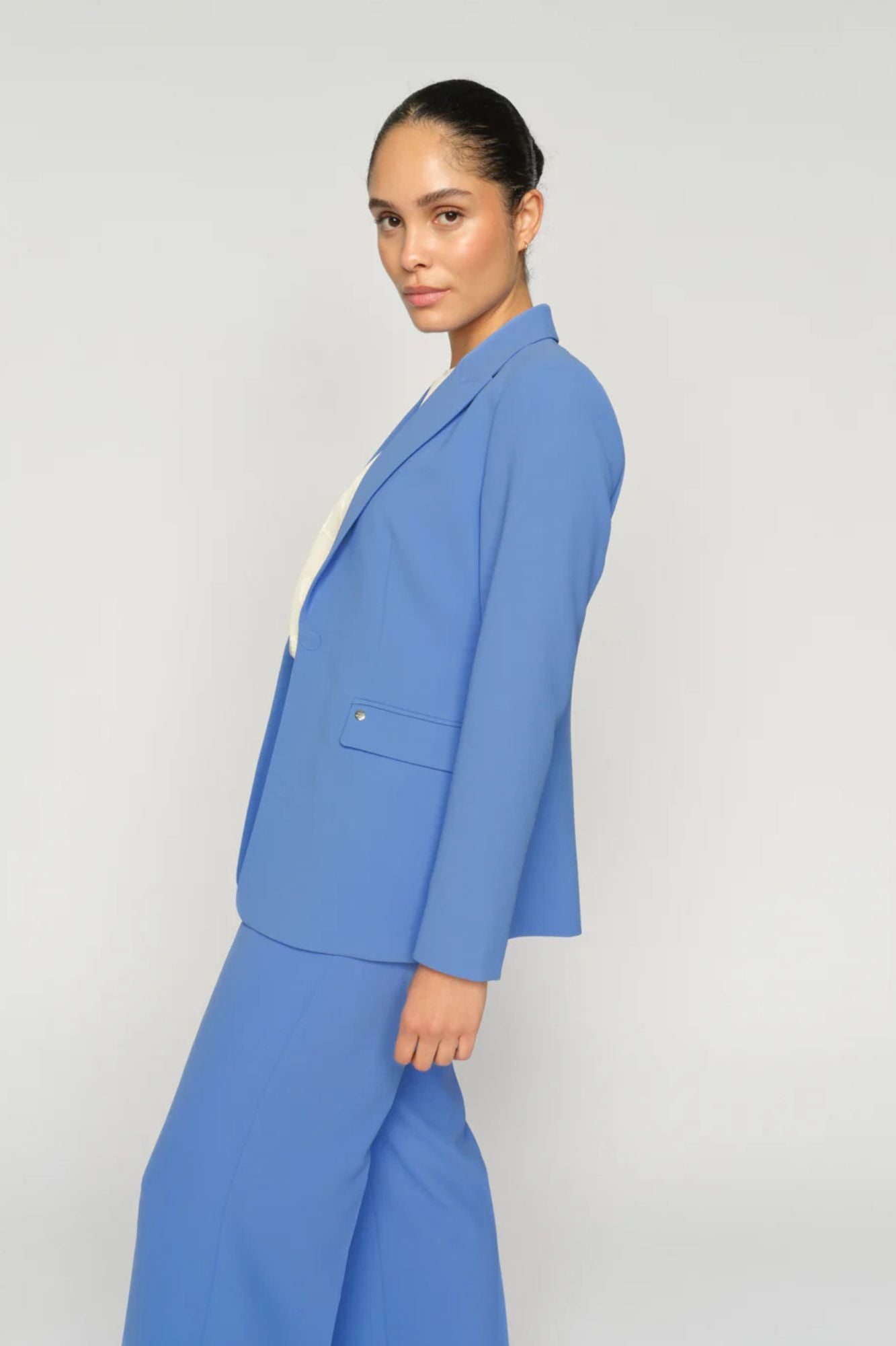 The Leonora Miley Blazer is a versatile wardrobe essential that transitions seamlessly from boardroom to evening. Its tailored fit and single-button closure create a polished silhouette, while classic lapels and functional front pockets add understated sophistication. Clean lines and structured construction work equally well layered over office attire or paired casually with denim, making it the perfect piece for any occasion.