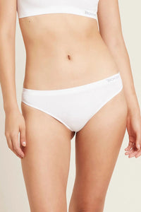 This white G-string features a thong cut for a barely-there feel and minimal coverage, making it a flattering and comfortable low-rise option. The soft and ribbed waistband offers gentle support, while the stitched seam at the back gusset reduces friction for a smoother and more comfortable fit.