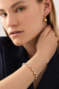 Discover the Celeste Bracelet—a stunning blend of polished silver and 14k gold that elevates any ensemble. This reimagined classic features luminous metal spheres and three non-removable extender rings, giving you the flexibility to adjust the fit for day-to-night versatility. Whether you're dressing up tailored pieces or layering with other Jenny Bird designs, this bracelet delivers modern, sculptural elegance that transforms your look.