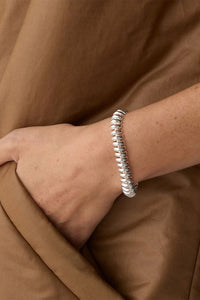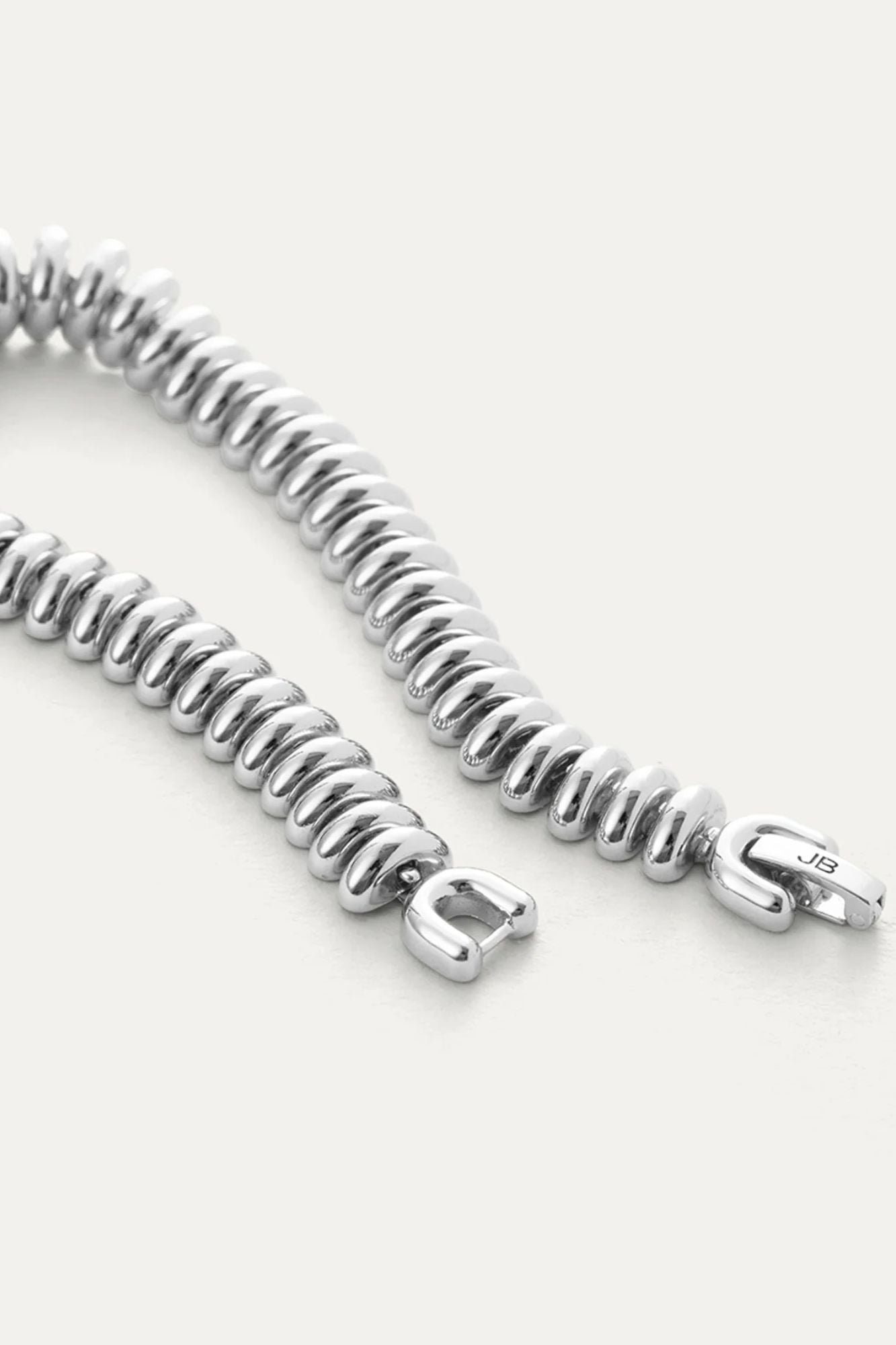 Discover timeless elegance with the Sofia Bracelet, a fluid chain design featuring distinctive ribbed texture created through innovative caterpillar construction. The vintage-inspired foldover closure adds sophisticated charm, while the high-polish silver finish catches the light beautifully. Perfect for layering or wearing solo, this bracelet seamlessly transitions from day to evening wear.