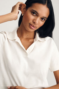 A boxy, cropped silhouette meets classic polo styling in this versatile t-shirt. Short sleeves and a relaxed fit make it effortlessly wearable—dress it up with tailored trousers for a polished look or keep it casual with denim shorts. The perfect piece for mixing elevated and laid-back styles.