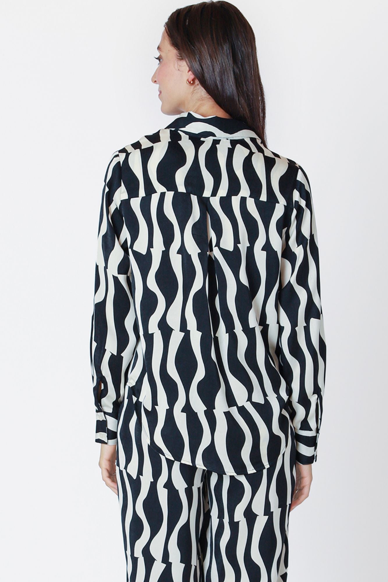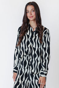 Expertly crafted, this Satin Blouse features a flowy and lightweight design with long sleeves perfect for any occasion. The elegant black and white print adds a touch of sophistication, while the button up collar allows for a versatile look. Experience comfort and style with this must-have piece.