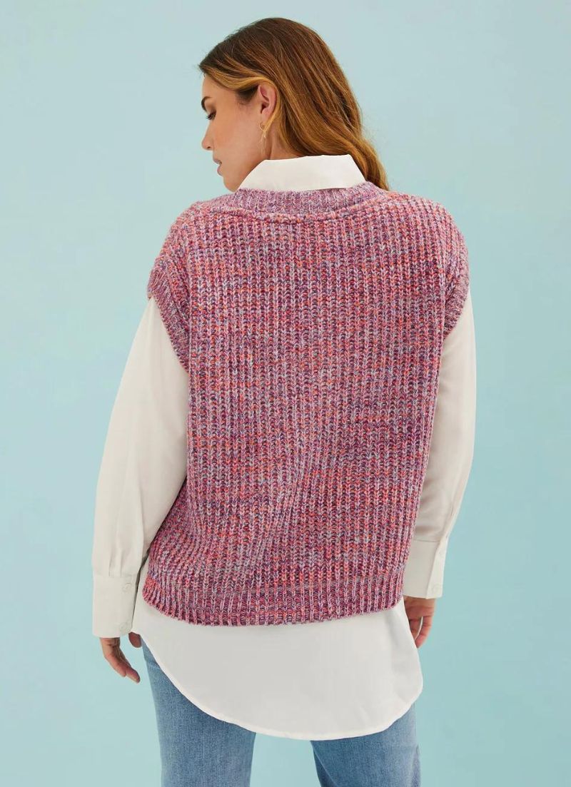 Un gilet tricoté col V, mais rendez-le coloré ! Dans une touche unique conçue exclusivement pour la marque, Sara a un joli col superposé et des fentes latérales qui ajoutent du mouvement au pull, ce qui en fait une coupe vraiment flatteuse.