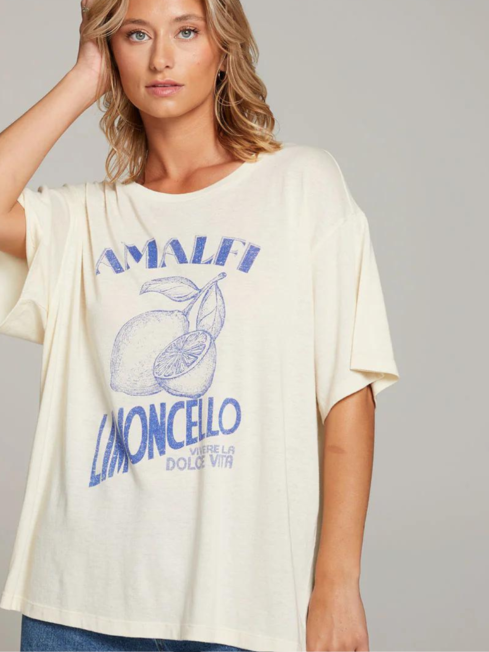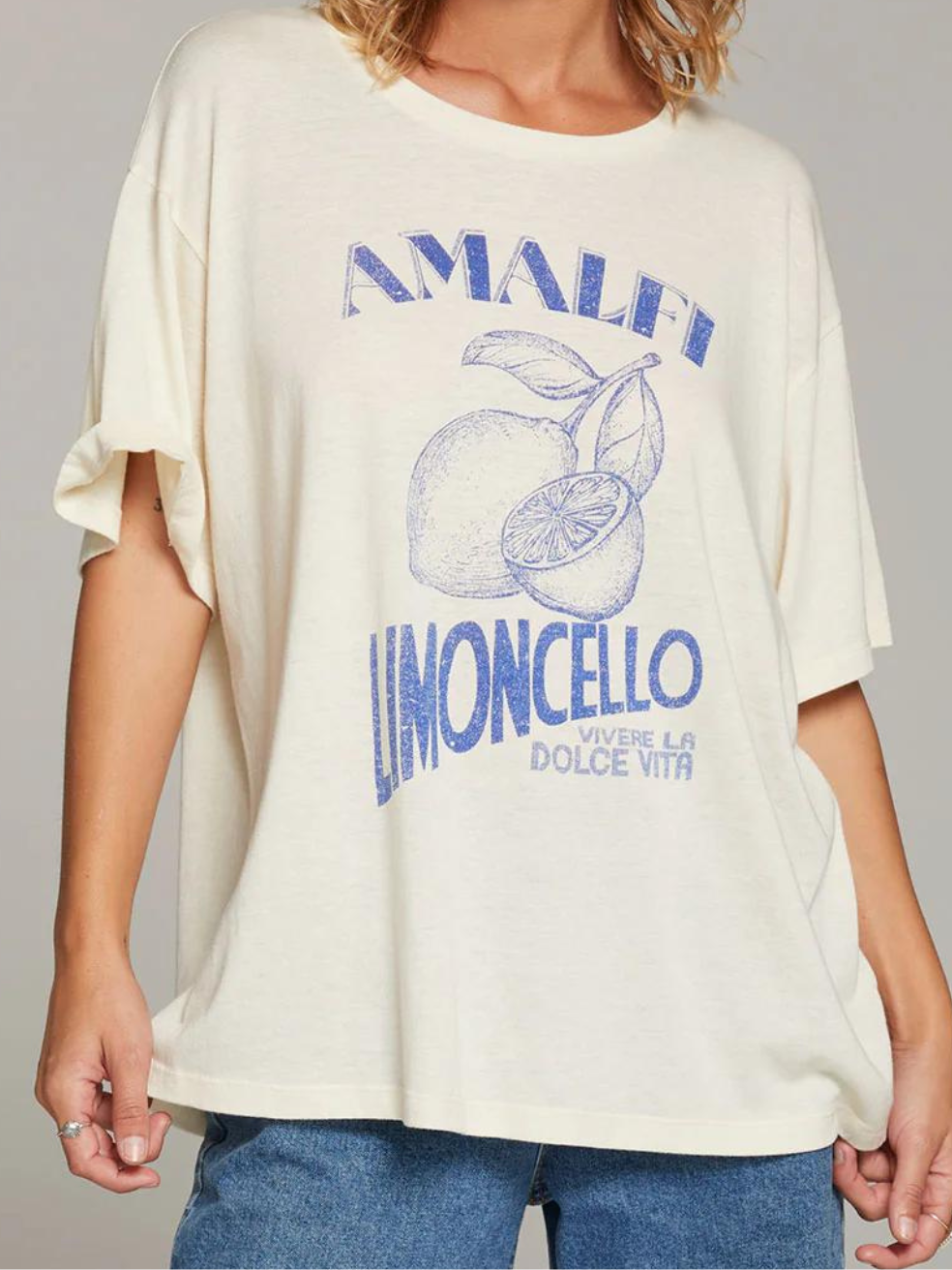 Enjoy the laid-back and tranquil vibes of the Amalfi tee in a whitecap grey hue. Celebrated worldwide for its charming Mediterranean seaside landscape, the Amalfi Coast is one of the most desirable destinations beloved by travelers seeking an unforgettable Italian adventure. Our women's short-sleeved t-shirt featuring a graphic of the region's infamous lemons is perfect for a summery day exploring Italy or enjoying a casual afternoon with friends. Pair with shorts and sandals.