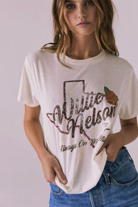 Celebrate the classic Texas vibe with the Willie Nelson Always On My Mind Tee. Decked out in cozy sepia shades and a charming vintage illustration, this recycled jersey crewneck brings a laid-back, country-cool feel. Whether you’re a die-hard Willie fan or just love a bit of rustic flair, the ribbed neckband keeps things comfy and snug. Slip into this perfectly faded Au Lait tee and let your wardrobe sing with genuine country style!