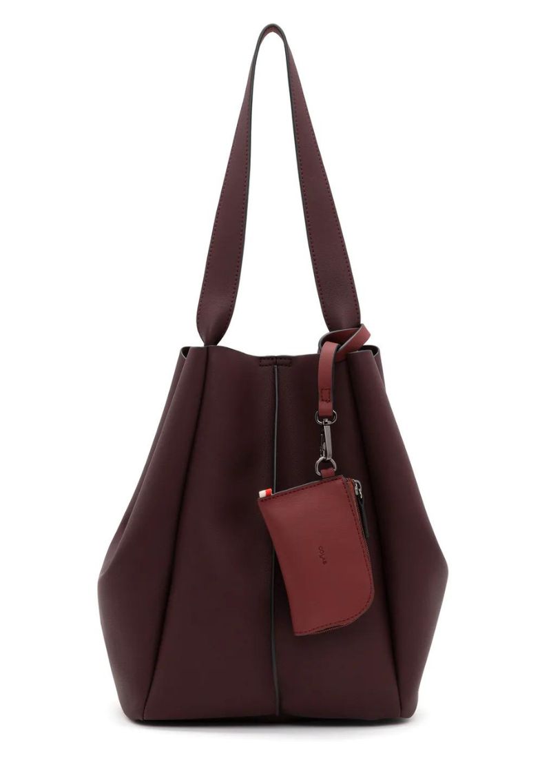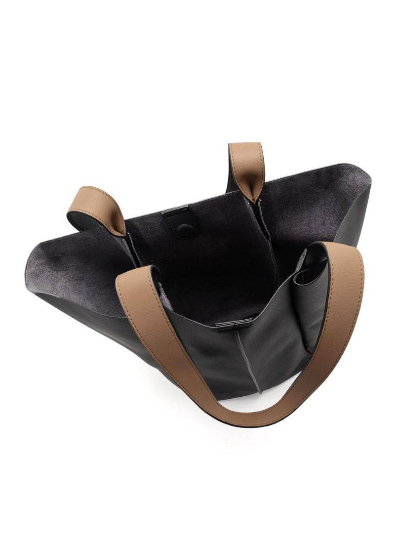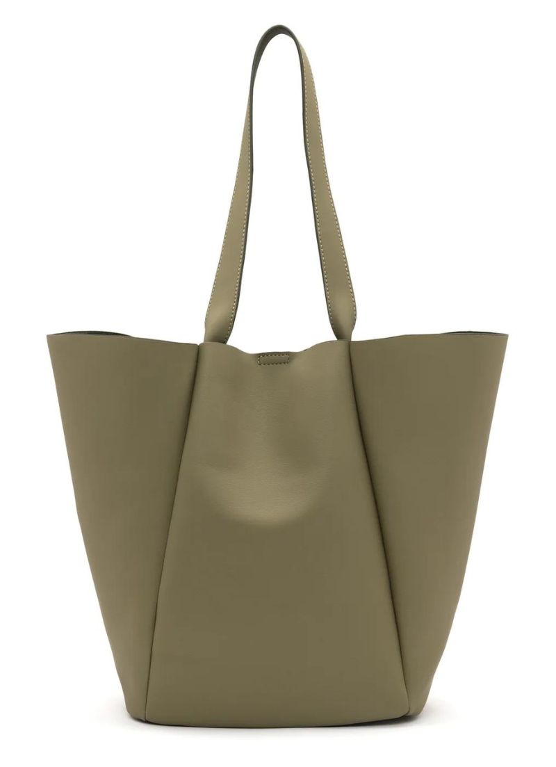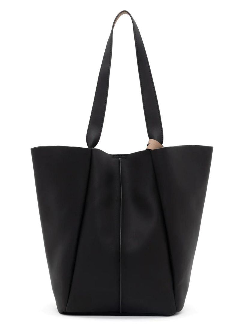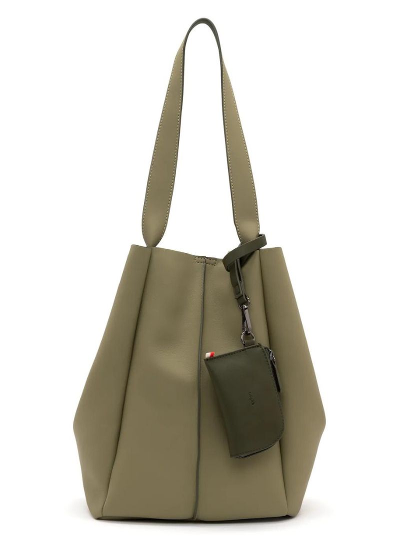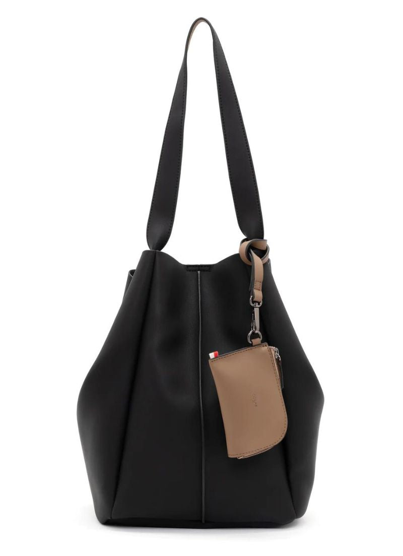 Le cabas sobre Shopper présente une forme douce et non structurée encadrée par un jeu de nuances bicolores. Dispose d'une petite pochette amovible sur crochet.