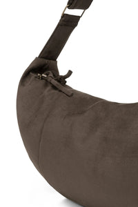 The Jane Crossbody Bag combines style and practicality with its soft suedine material and elegant half-moon silhouette. Its roomy zippered main compartment and front zip pocket with decorative pull cords keep essentials organized and accessible. The adjustable shoulder strap offers a perfect fit for all-day comfort. Measuring 60 cm long and 31 cm high, it’s the ideal accessory to effortlessly elevate any outfit.