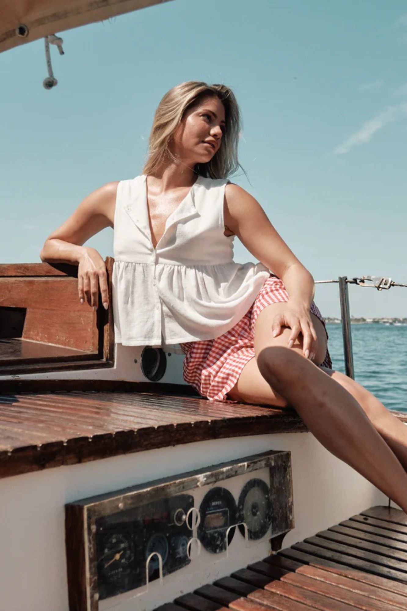 Add a touch of feminine flair to your style with our Leanne Blouse. Its flowy cut and buttoned front offer an airy and effortless look, perfect for any occasion. Pair it with high-waisted jeans or shorts for a relaxed and chic summer look!