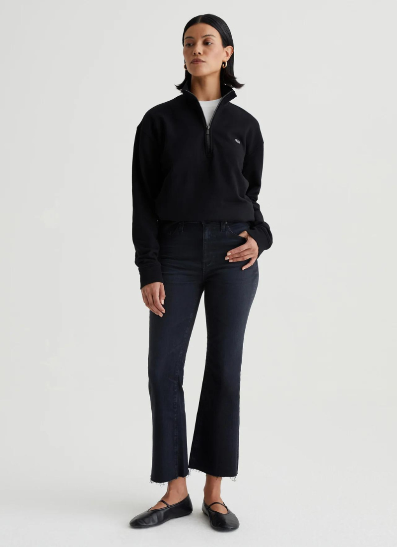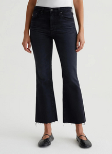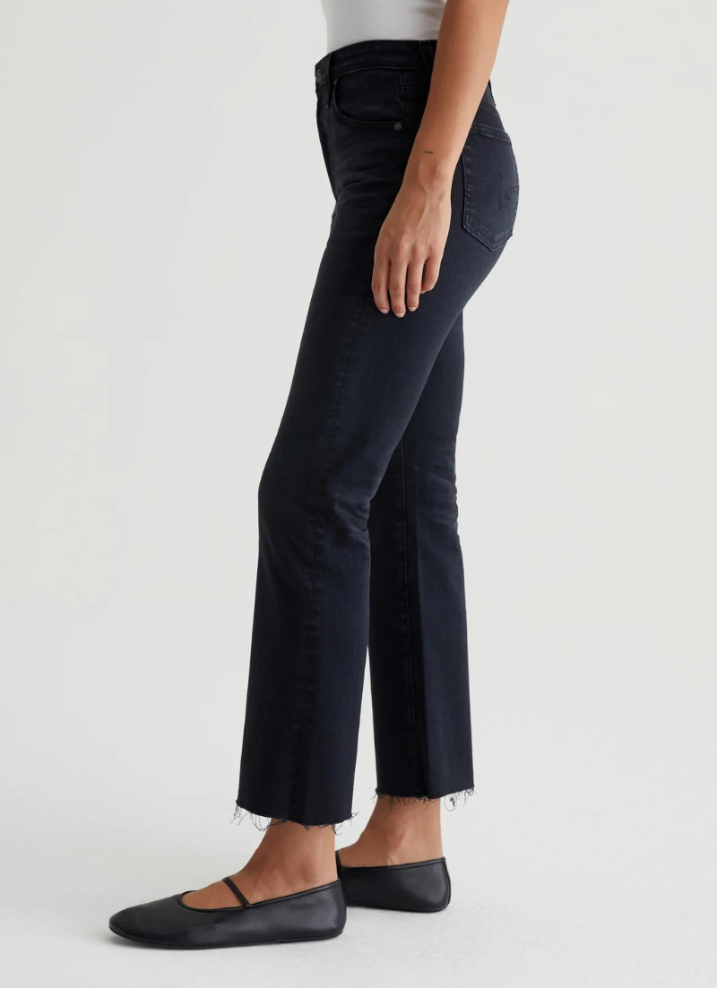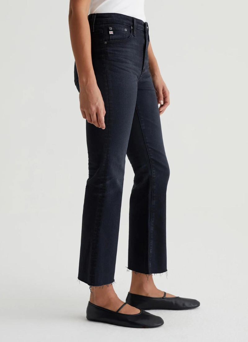 Le jean Farrah Boot Crop est une silhouette bootcut courte taille haute avec un délavage noir AG-ed™ et des ourlets bruts. Il est délavé et froncé pour imiter le processus naturel de rodage qui accompagne 4 ans de port. Fabriqué à partir de 10 onces. Ashen Stretch Denim, la paire a une coupe skinny sur les jambes avant de s'ouvrir dans une forme subtilement évasée.