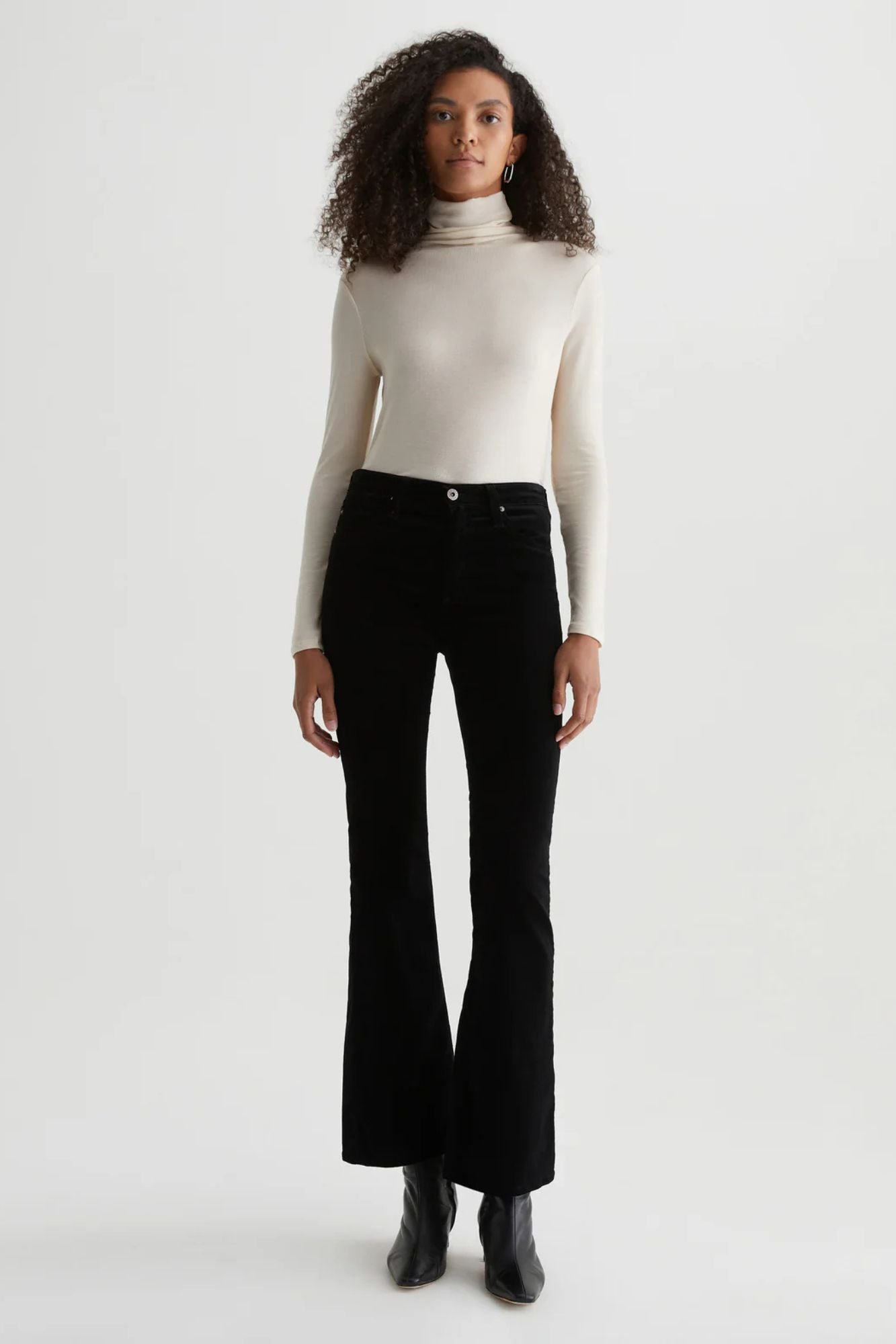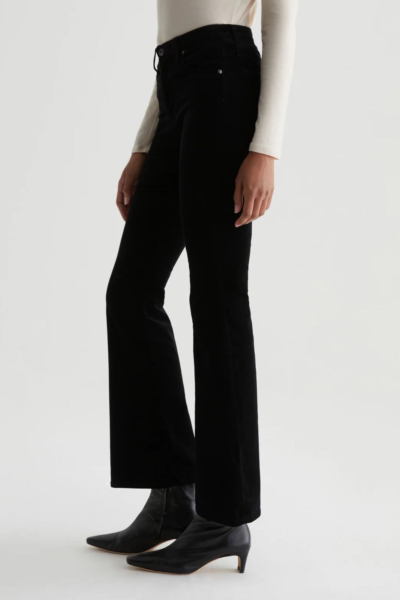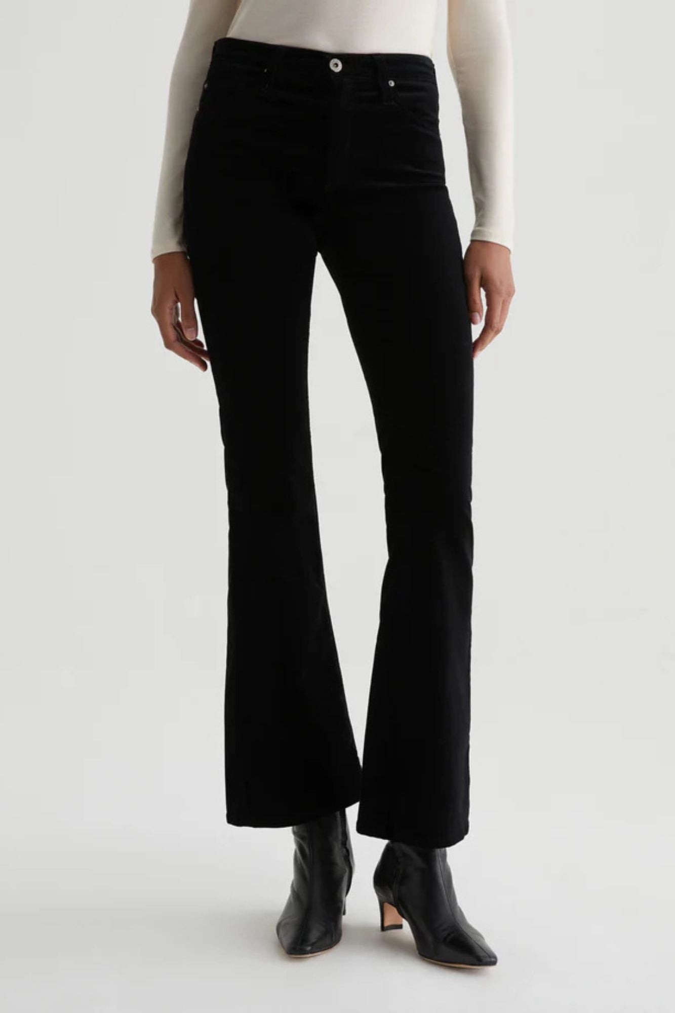 Step up your style game with the Farrah Boot Velvet. Crafted from opulent stretch velvet in a sleek black color, these mid-rise bootcut jeans hug your curves and flatter your figure. Perfect for night outs or dressy occasions, they'll elevate any outfit with their subtle flare hem and slim fit.