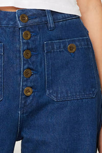Upgrade your denim game with the Studio Flare Lou High Rise. This jean features a super high, relaxed wide leg cut for a comfortable and trendy fit. The specially angled back design enhances your shape, while the rigid denim provides durability. Plus, the front patch pockets and exposed button fly add a stylish touch.