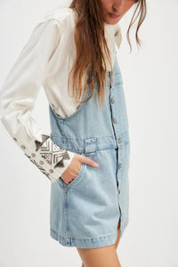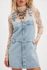 This Edie Denim Skirtall from Free People offers a relaxed, shapeless fit that feels effortlessly stylish. Featuring a scoop neckline, adjustable brace straps, front button-up closures, and handy side pockets, it’s designed for comfort and versatility. Perfect for layering, this timeless piece easily adapts to any outfit, making it a must-have addition to your denim collection.