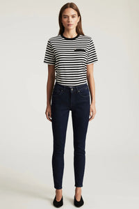 Tess Skinny Jeans offer a sleek high-rise silhouette with a super-skinny fit that contours your hips, thighs, and legs for a flattering profile. Crafted from a fabric that combines the nostalgic look of 90s denim with the comfort and stretch of leggings, these jeans provide style and ease for all-day wear. Perfect for those seeking a modern yet timeless look with unmatched comfort.