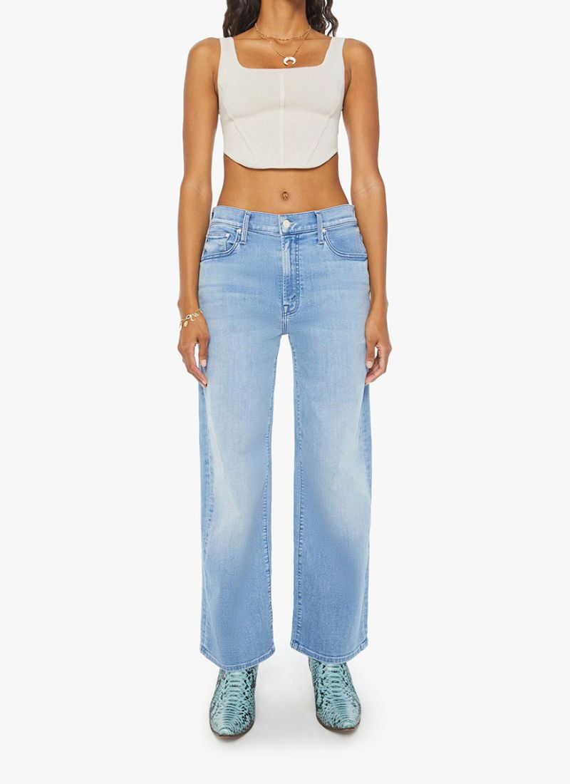 Tripping out. Jeans designed to sit lower on the hips with a loose straight leg and a 30-inch inseam with a clean hem. Made from denim with a touch of stretch, All Over The Map is a light-blue wash with subtle whiskering and fading throughout.