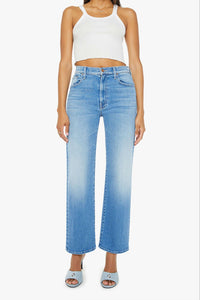 Introducing the Rambler Zip Flood - the perfect blend of comfort and style. These high-waisted jeans feature a wide straight leg and a zip fly for a sleek look. Crafted from soft stretch denim, the medium blue wash with subtle fading and whiskering adds a touch of effortless cool. Upgrade your denim game today.
