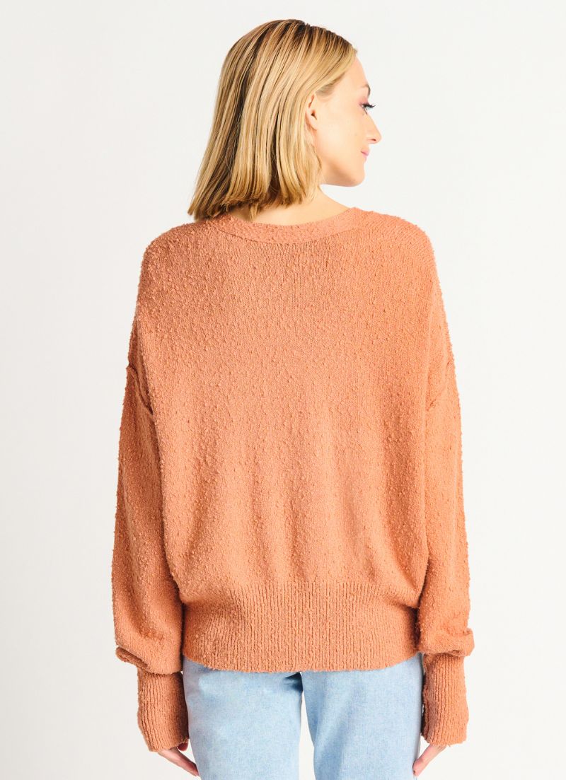Un cardigan bouclé de coupe décontractée avec trois boutons contrastés sur le devant.