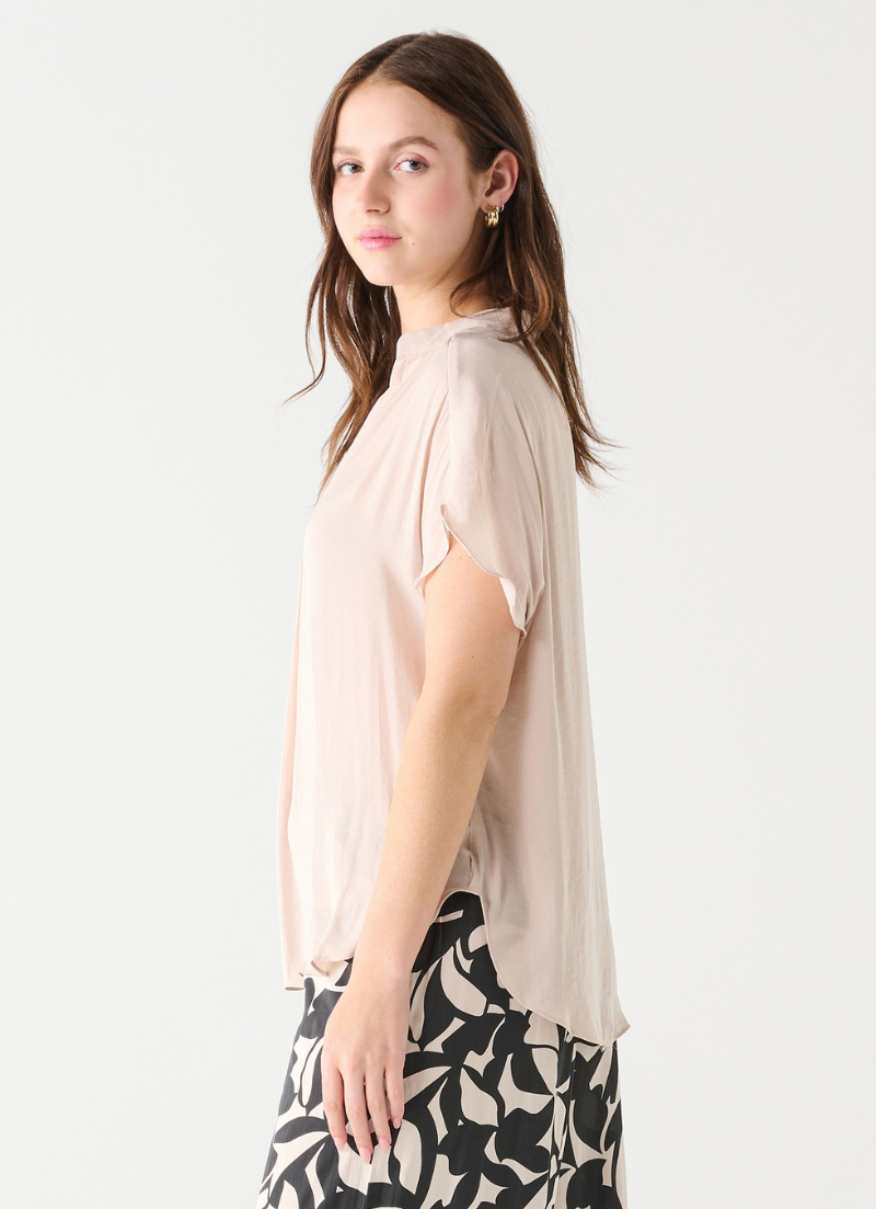 Experience luxurious comfort and style with the Loose Fit Satin Blouse! Featuring a v-neckline and short sleeves, this blouse is made of high-quality satin for a smooth and elegant look. With its loose fit, it offers both a flattering and comfortable fit, making it a perfect addition to your wardrobe. Elevate your outfit game and feel confident in this must-have blouse.