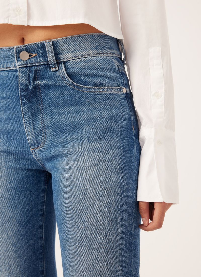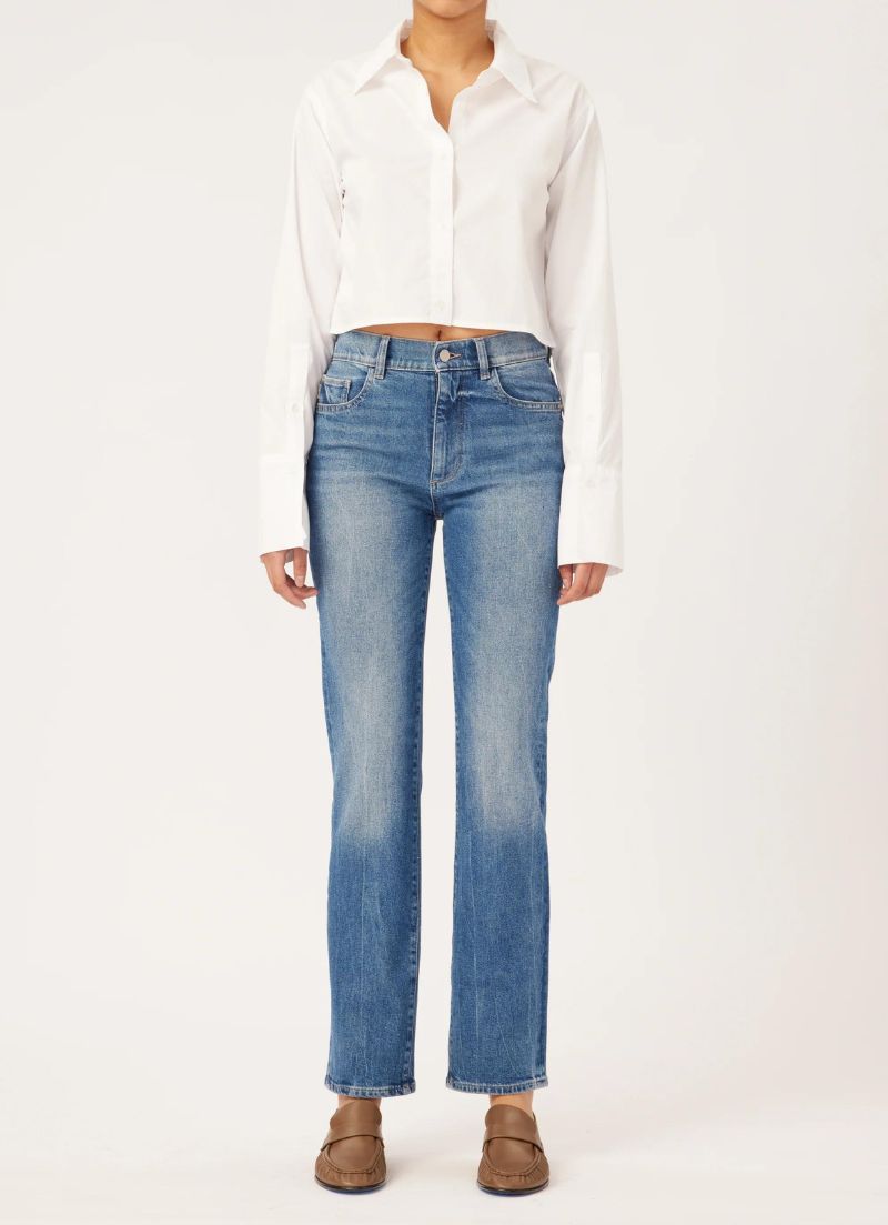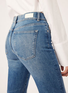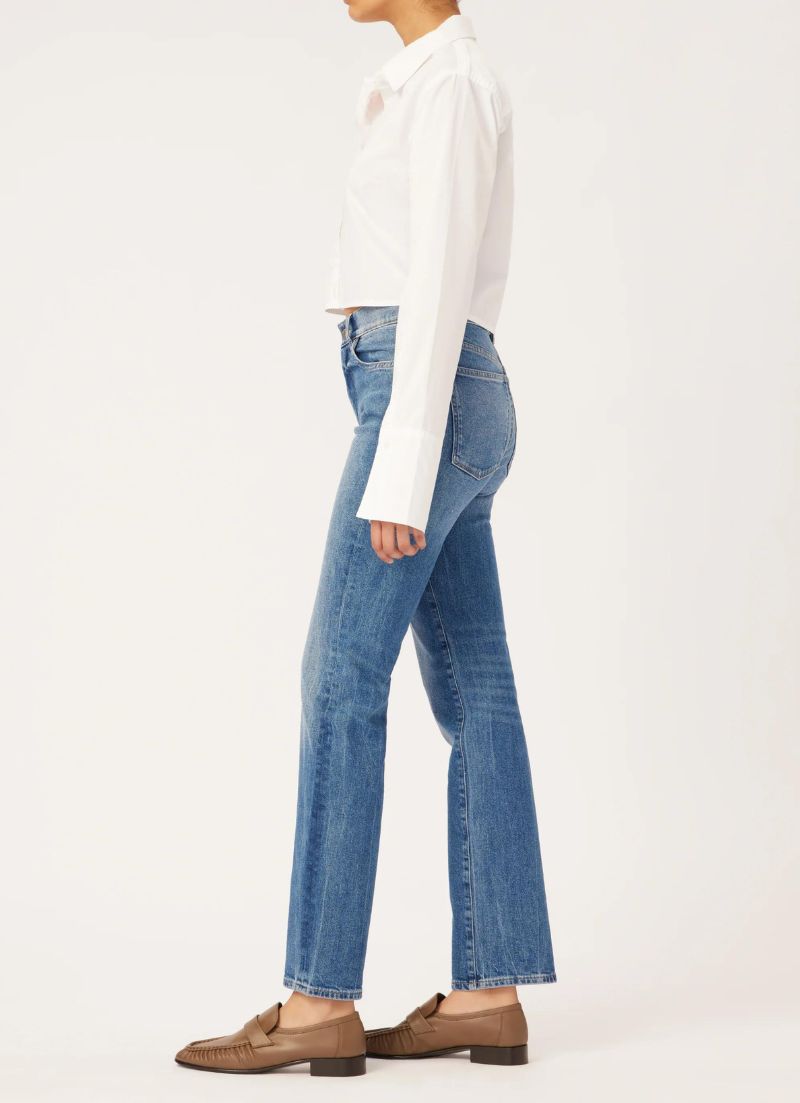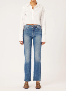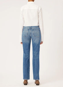 Patti est une coupe droite vintage taille haute avec un entrejambe de 31" détendu tout au long de la jambe pour le look classique que vous aimez combiné avec un confort moderne. Driggs est un délavage moyen d'inspiration vintage avec un look usé authentique. Il présente matériel argenté brossé, coutures kaki clair, ourlet brut et patch écru au dos.