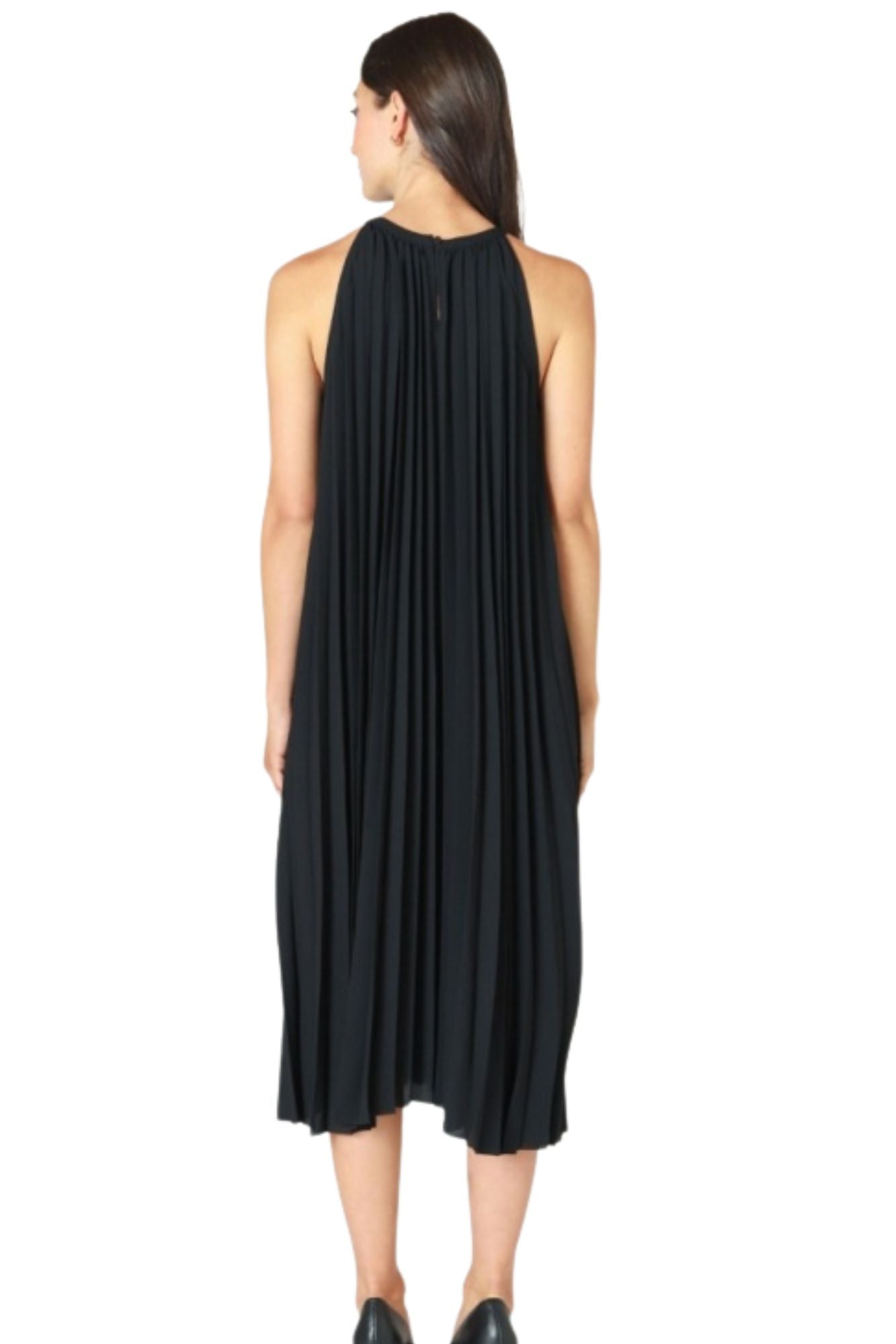 The Pleated Halter Dress in Black is your go-to for effortless elegance. Its flowing pleats add graceful movement, while the halter neckline offers a flirtatious, modern edge. Perfect for any occasion, this midi dress blends sophistication with playful charm, ensuring you stand out with confidence and style.