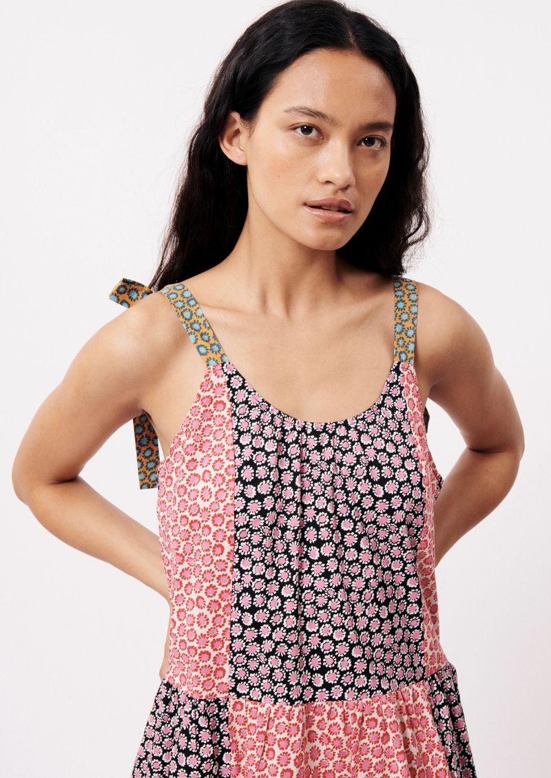 "Préparez-vous pour le printemps avec la robe Aylin ! Cette robe longue à motifs est fluide et parfaite pour la saison. Les fines bretelles peuvent être nouées pour un ajustement confortable. Adoptez votre style ludique et chic !"