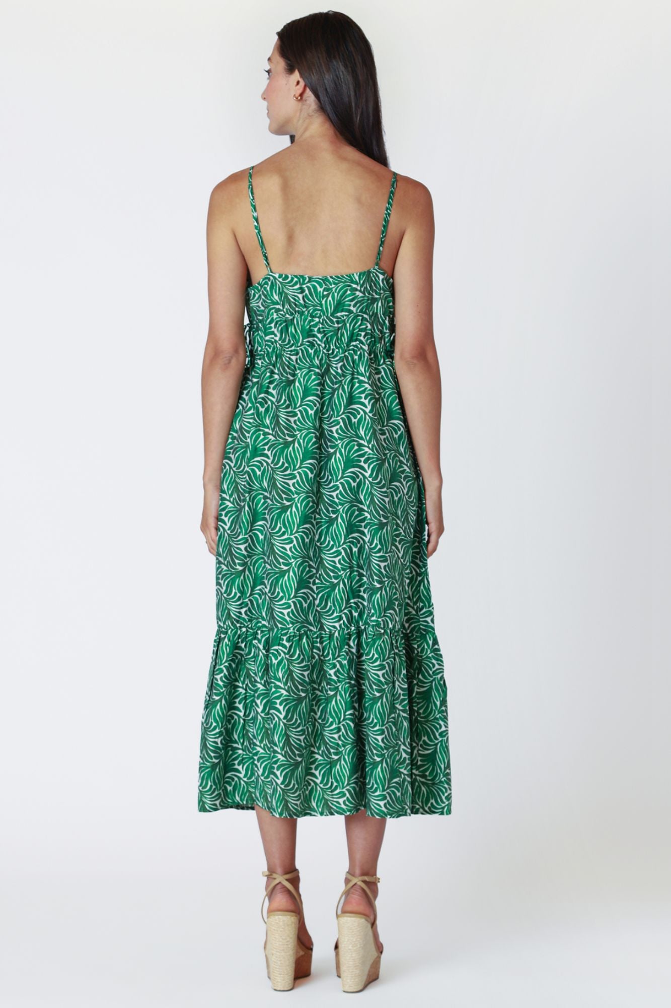 Introducing the Drawstring Detail Maxi Dress! Embrace the flowy green leaf print and spaghetti straps, perfect for any occasion. With a drawstring waistline, this dress provides a flattering fit and the ultimate comfort. Elevate your wardrobe with this must-have piece.