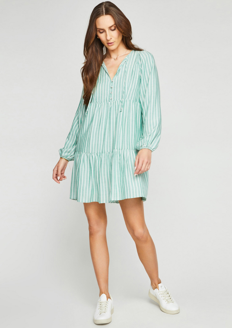 Préparez-vous pour le printemps avec la robe Emily ! Cette robe à rayures ludiques est exactement ce dont vous avez besoin pour ajouter une touche amusante à votre garde-robe. Parfait pour toutes les occasions et ne manquera pas de faire tourner les têtes. (Sans jeu de mots!)