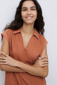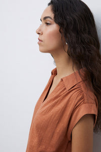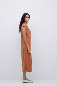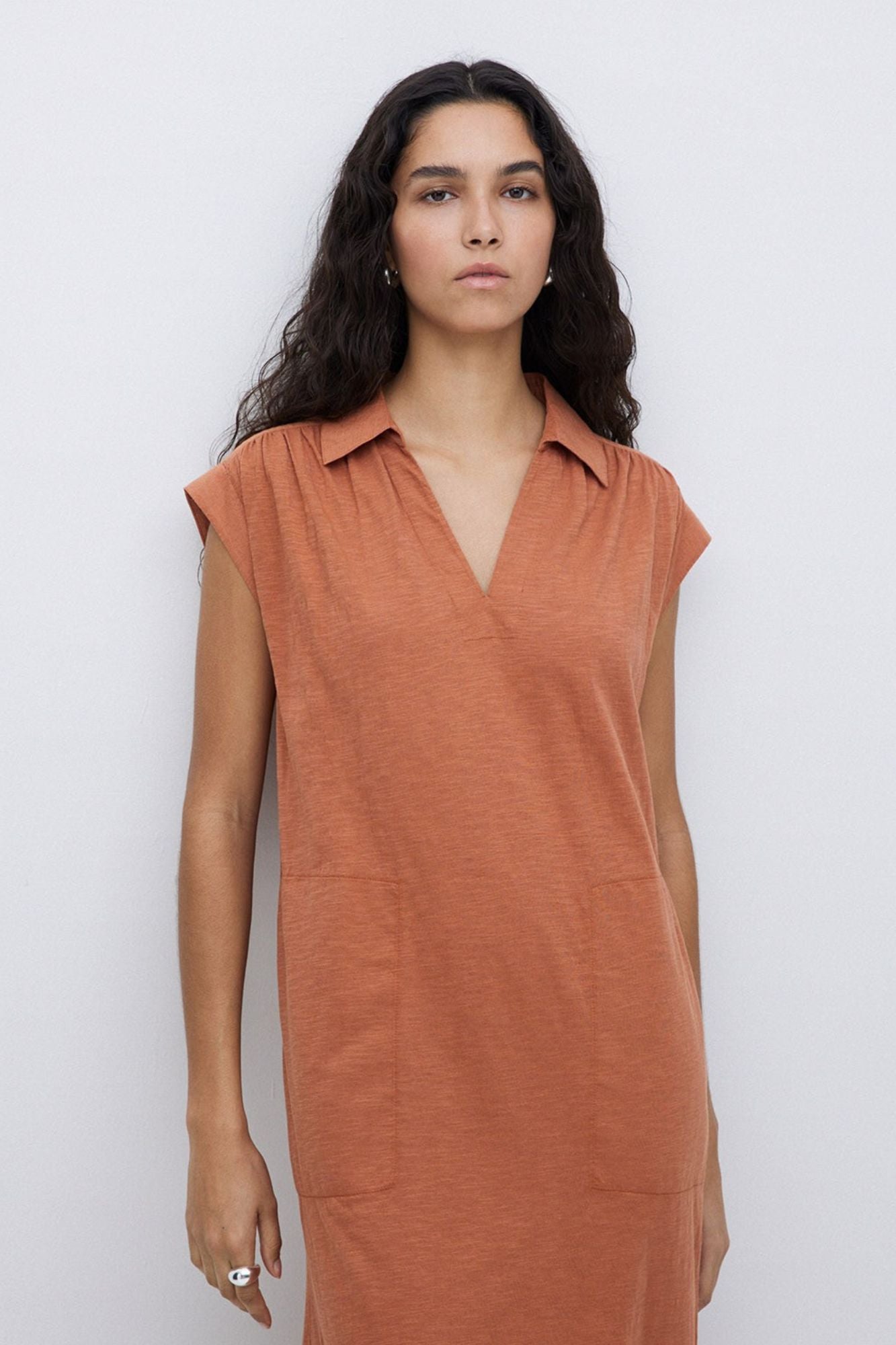 The Rusty Cove Dress is the perfect combination of comfort and style. Made with soft, slub-cotton fabric, this shirt dress features a wide cut and a flattering V-neckline. Short sleeves and two side pockets add practicality to its chic design. Embrace the effortless elegance of this versatile piece.