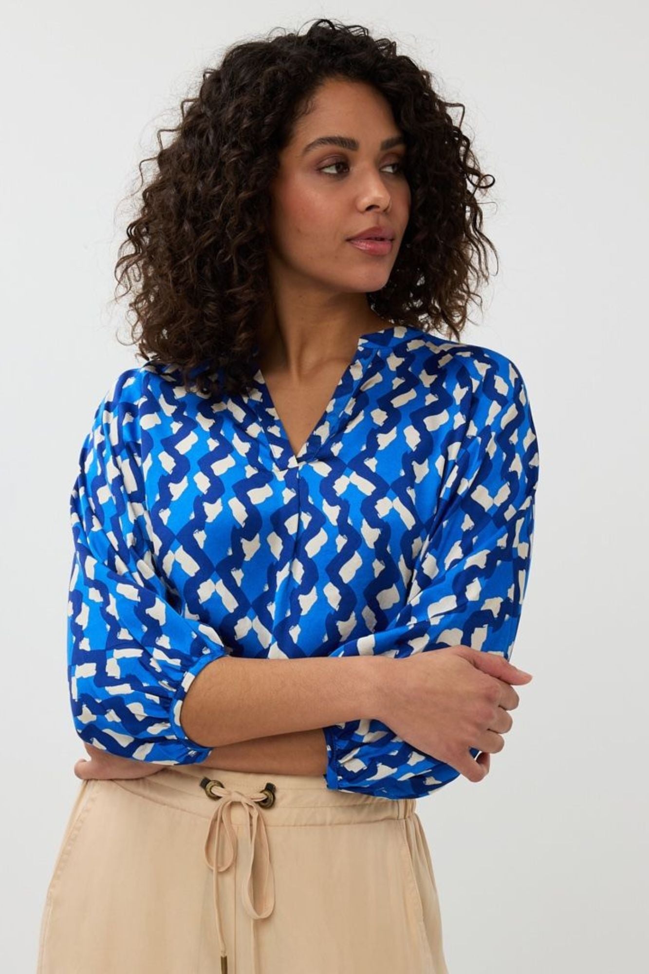 Be a dream in the Utopia Fantasy Blouse! The 3/4th sleeve blouse features a pleated v-neckline and is made of a luxurious viscose and rayon blend. Embrace style and comfort with this beautiful printed blouse!