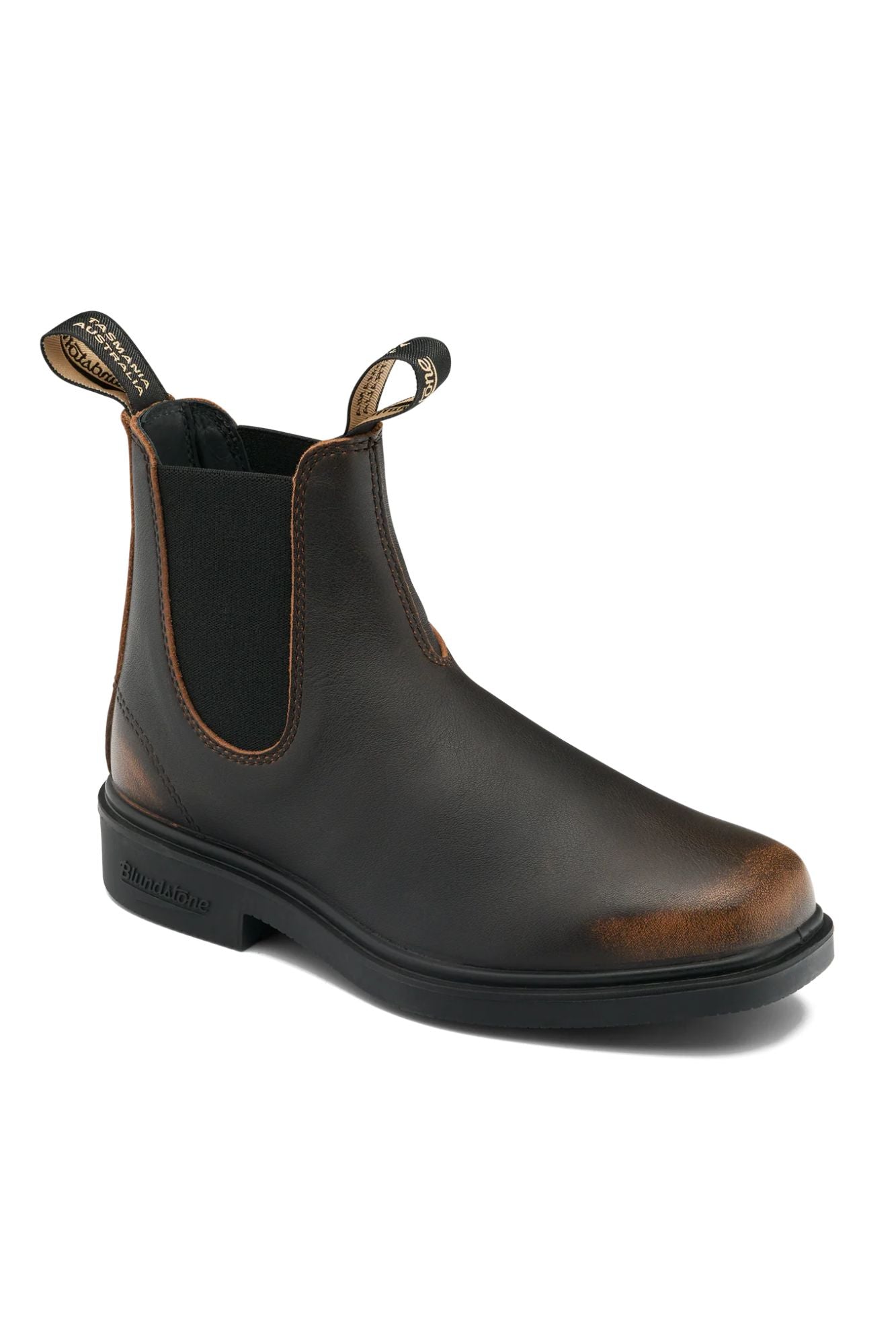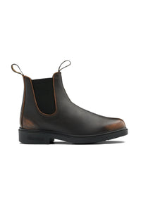 Experience the perfect blend of style and substance with the Chisel Toe #2583 in Vintage Brown. This Blundstone Chelsea Dress boot showcases brushed leather that deepens with character over time, delivering a refined aesthetic that works year-round. The distinctive chisel toe shape sets it apart, while premium weatherproof leather keeps your feet protected in any condition. Functional pull tabs make getting in and out effortless, and the durable thermo-urethane outsole ensures lasting wear. With SPS Max Comfort technology absorbing heel strike shock, you'll enjoy all-day comfort without compromising on timeless elegance. A versatile boot that proves durability and sophistication go hand in hand.