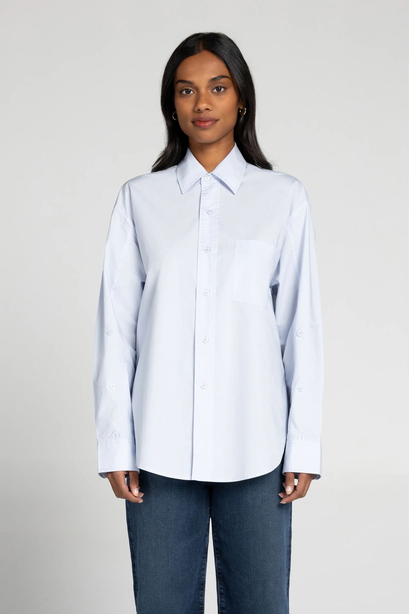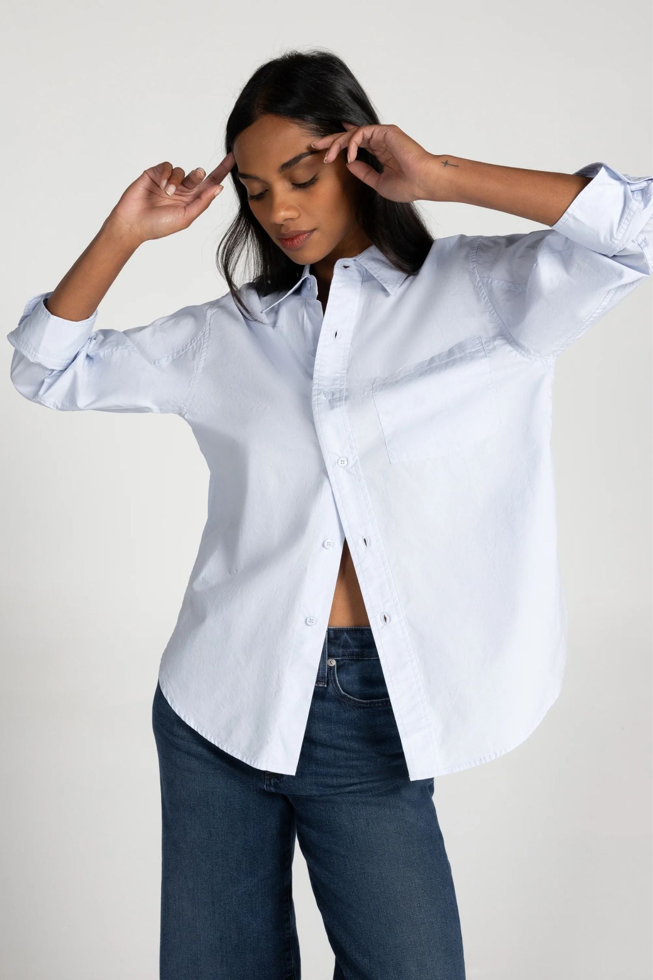Elevate your wardrobe with the AM to PM Boyfriend Shirt, a versatile essential designed for effortless style. This oversized, button-up collared shirt offers a relaxed yet polished look, perfect for transitioning from day to night. Its boyfriend fit adds a modern edge while ensuring comfort, making it an ideal choice to enhance any outfit with a touch of sophistication.