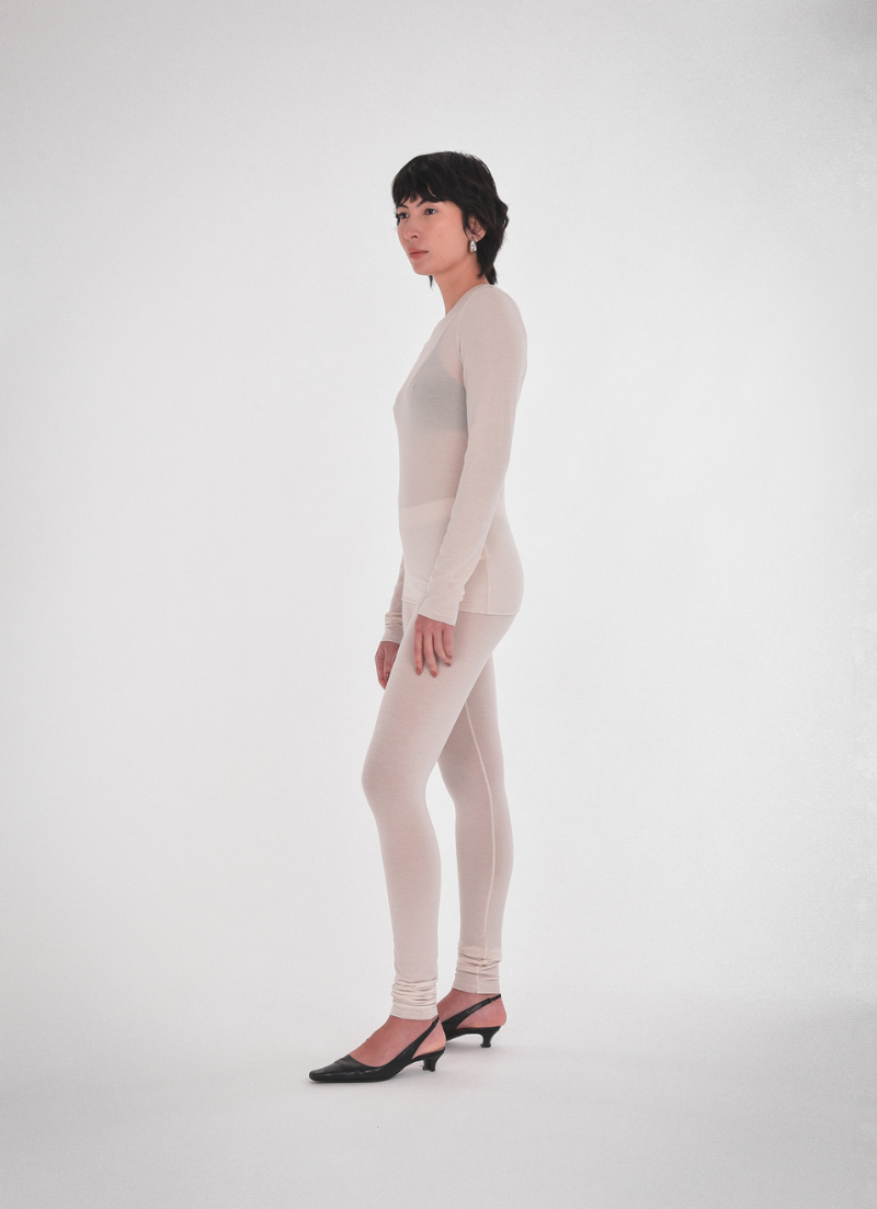 Wave goodbye to your other long sleeves - introducing our all-seasonal sheer tencel wool top. Crafted from lightweight, naturally breathable with Tencel and spandex. It offer a luxurious feel, ensuring next-to-skin comfort.