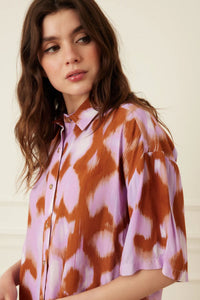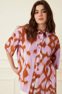 Elevate your wardrobe with our stunning Chloe Blouse. This eye-catching piece features a sophisticated abstract print on luxurious viscose fabric that drapes beautifully against your skin. The oversized, boxy fit offers both comfort and contemporary style, while the classic button-down design ensures versatility for any occasion. Perfect for those who appreciate distinctive fashion with effortless wearability.