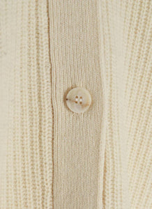 Elisabeth est un cardigan en tricot féminin à la coupe décontractée et conçu avec une encolure ouverte, des épaules décontractées et trois boutons sur le devant.