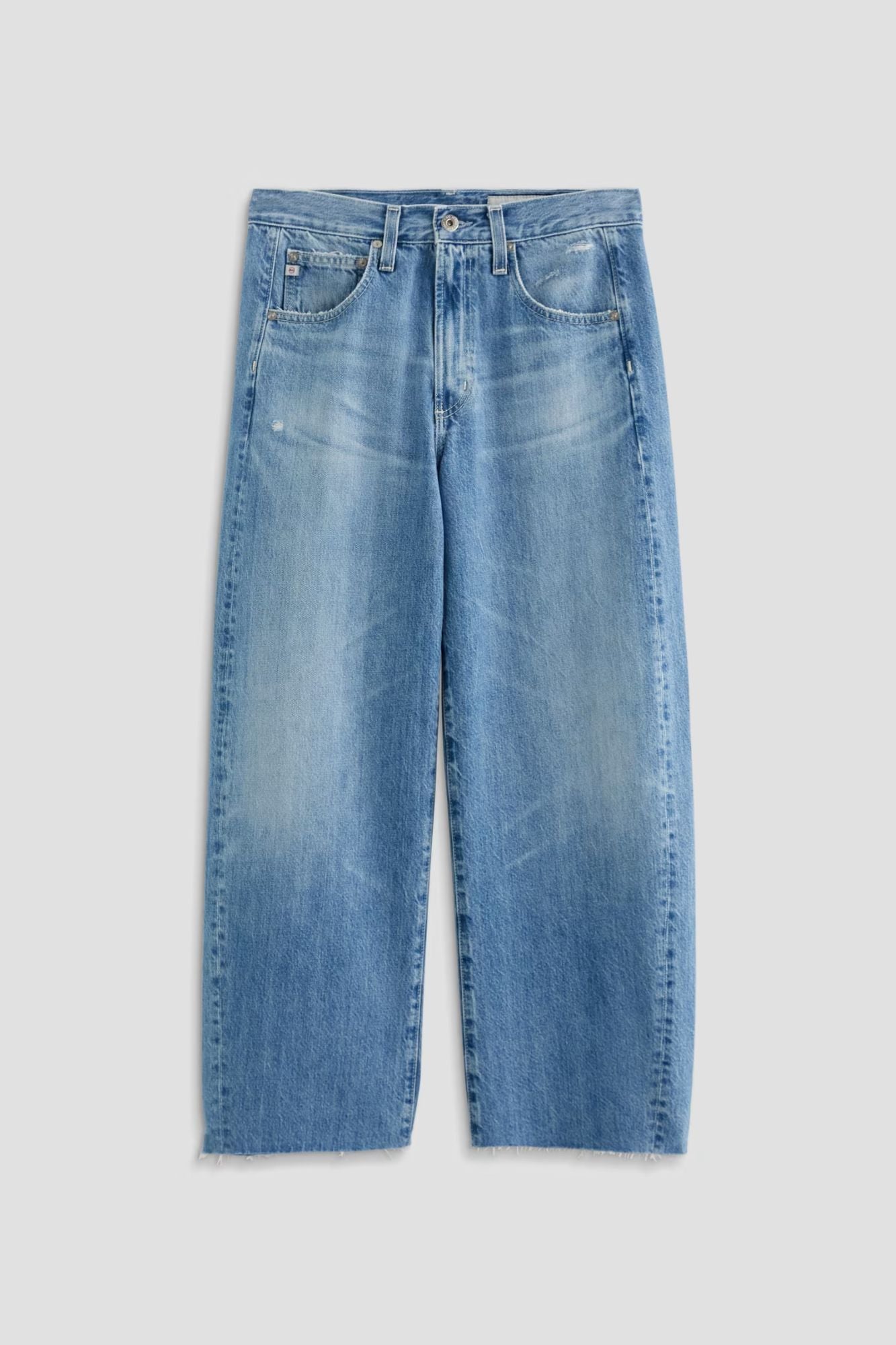 Get ready to turn heads with the Hattie Crop High-Rise Barrel! Made from sturdy non-stretch denim and finished in a fun AG-ed™ light wash that looks like it’s been loved for 17 years, these jeans bring effortless cool to your closet. With raw hems and a structured barrel shape, they blend a laid-back vibe with a touch of edge. Perfect for those who love style with a playful twist!