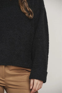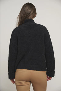 Super soft women's sweater. This mock turtleneck sweater features a relaxed fit with its dropped shoulder lines and long, wide sleeves. It has small rib details at the cuffs and the bottom hem.
