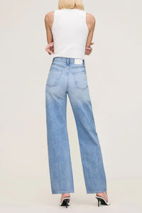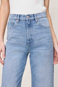 Introducing the Karmine Refined Wide Leg—a high-rise essential that elevates your everyday style. With a 28" inseam and straighter silhouette, this jean delivers a polished, sophisticated look that works from office to weekend. The Salt Lake wash captures vintage charm through light indigo tones, subtle fading, and whiskering details. Premium hardware including silver shank and copper rivets pairs beautifully with khaki stitching and an ecru back patch for refined finishing touches. A clean hem completes the refined aesthetic. Effortlessly versatile and undeniably chic.