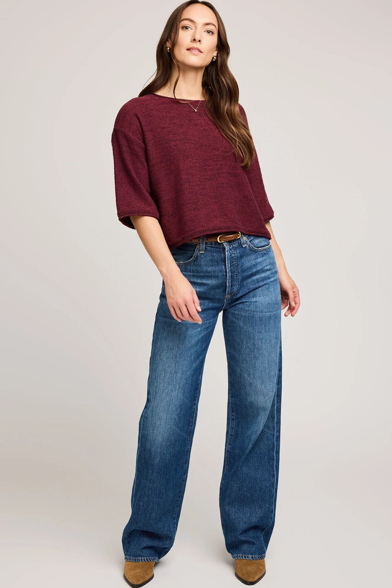 Cozy up in the Kerrigan Knit Sweater, crafted from yarn with a charming slub effect that adds texture and character. Its heathered color and rolled hem details bring a laid-back vibe, perfect for playful days and relaxed evenings. This sweater effortlessly blends comfort with casual style.