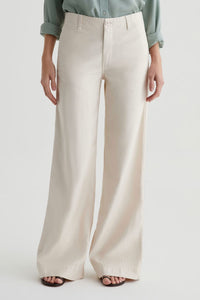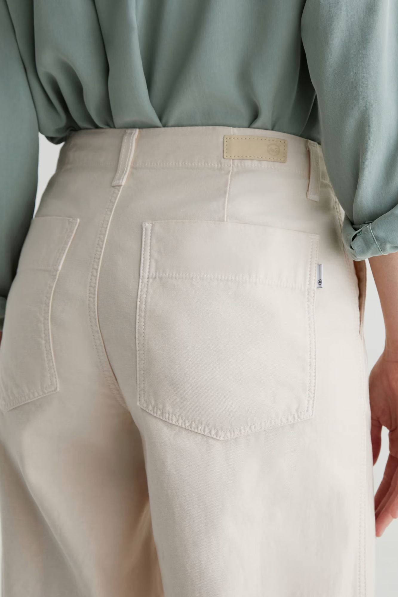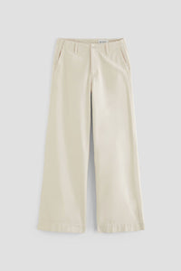 The Laurent Utility Wide Leg pants combine comfort and style with a mid-rise waist and a relaxed, full-length fit designed to sit low on the hips. Crafted from off-white Sternway Reverse Sateen, they offer a smooth, durable feel. Practical trouser-style front pockets and workwear-inspired patch pockets at the back add both function and a modern edge, making these pants a versatile choice for effortless everyday wear.