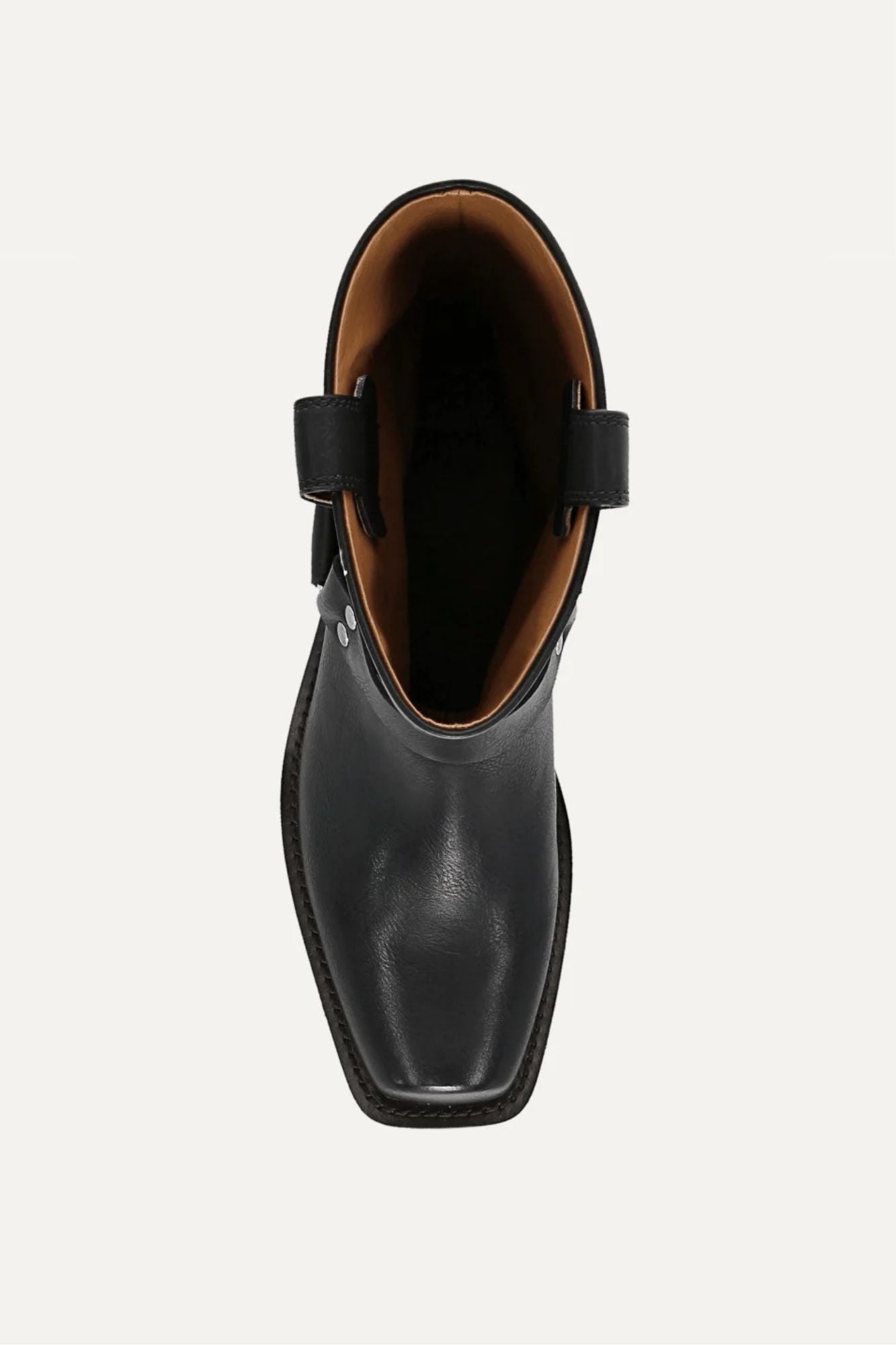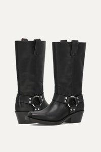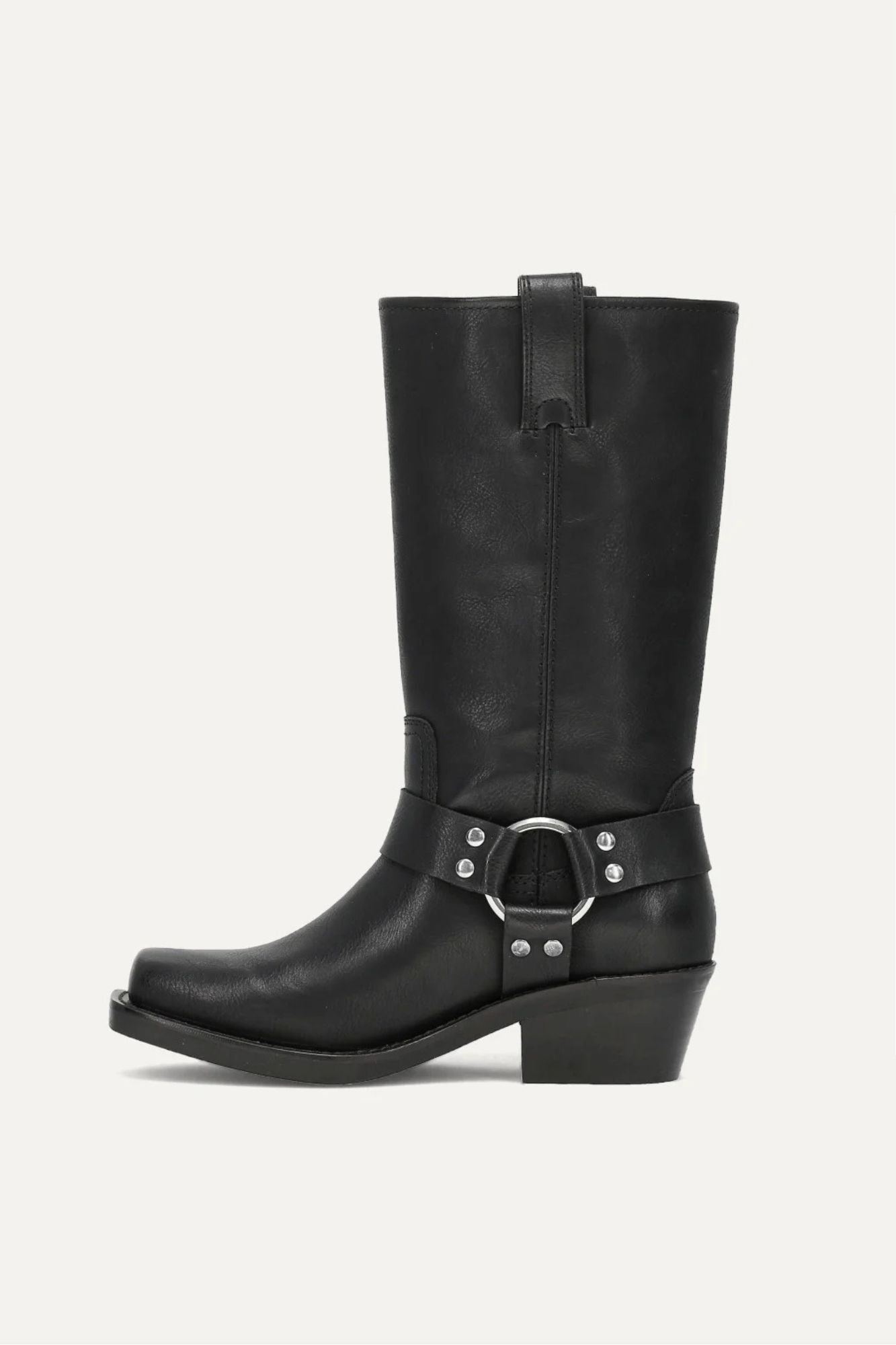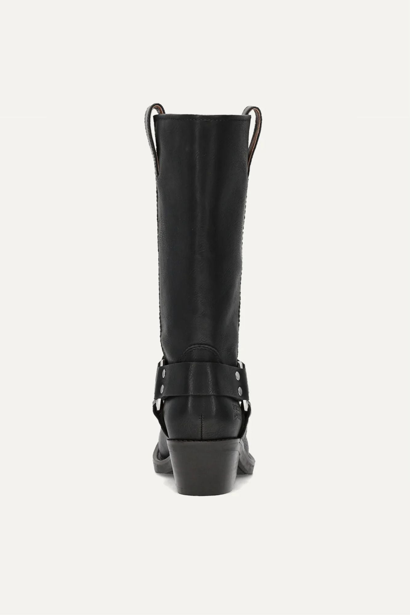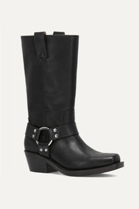 Add a bold statement to your wardrobe with the Lorrie Harness 12 boots. Crafted from vegan leather, these boots combine edgy harness hardware with a cushioned insole, ensuring comfort from the first step. The leather stacked heel and durable textured outsole provide lasting wear and a confident stride. Perfect for pairing with distressed denim or a leather jacket, they deliver effortless cool every day.
