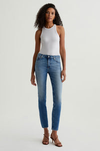 Meet the Mari Crop—your new go-to jeans with just the right amount of worn-in charm. These mid-rise beauties hug your hips comfortably and flow into a straight, slim-leg silhouette that's cropped to show off your favorite shoes. The medium wash, fading, and frayed hems bring 14 years of cool vibes to a fresh pair of five-pocket denim crafted from comfy Cloud Rouge Advanced Stretch Denim. Effortless style with a playful edge!