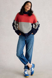 Wrap yourself in comfort with the Mary Colour Block Sweater—your new go-to for effortless style. This playful knit features a striking colourblock design that adds visual interest to any outfit, while the cosy roll neck keeps you warm and snug. Perfect for layering or wearing solo, it's the kind of piece that makes you want to settle in and stay awhile. Embrace the comfort, embrace the colour.