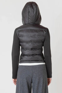 Stay cozy and stylish with the Mixed Fabric Puffer Jacket! Its stretchy sleeves and side panels move with you, while the insulated body keeps you warm. A comfy hood and zippered pockets add practical charm for your daily adventures. Designed to fit snug and sleek, this jacket turns casual into cool with a playful twist.