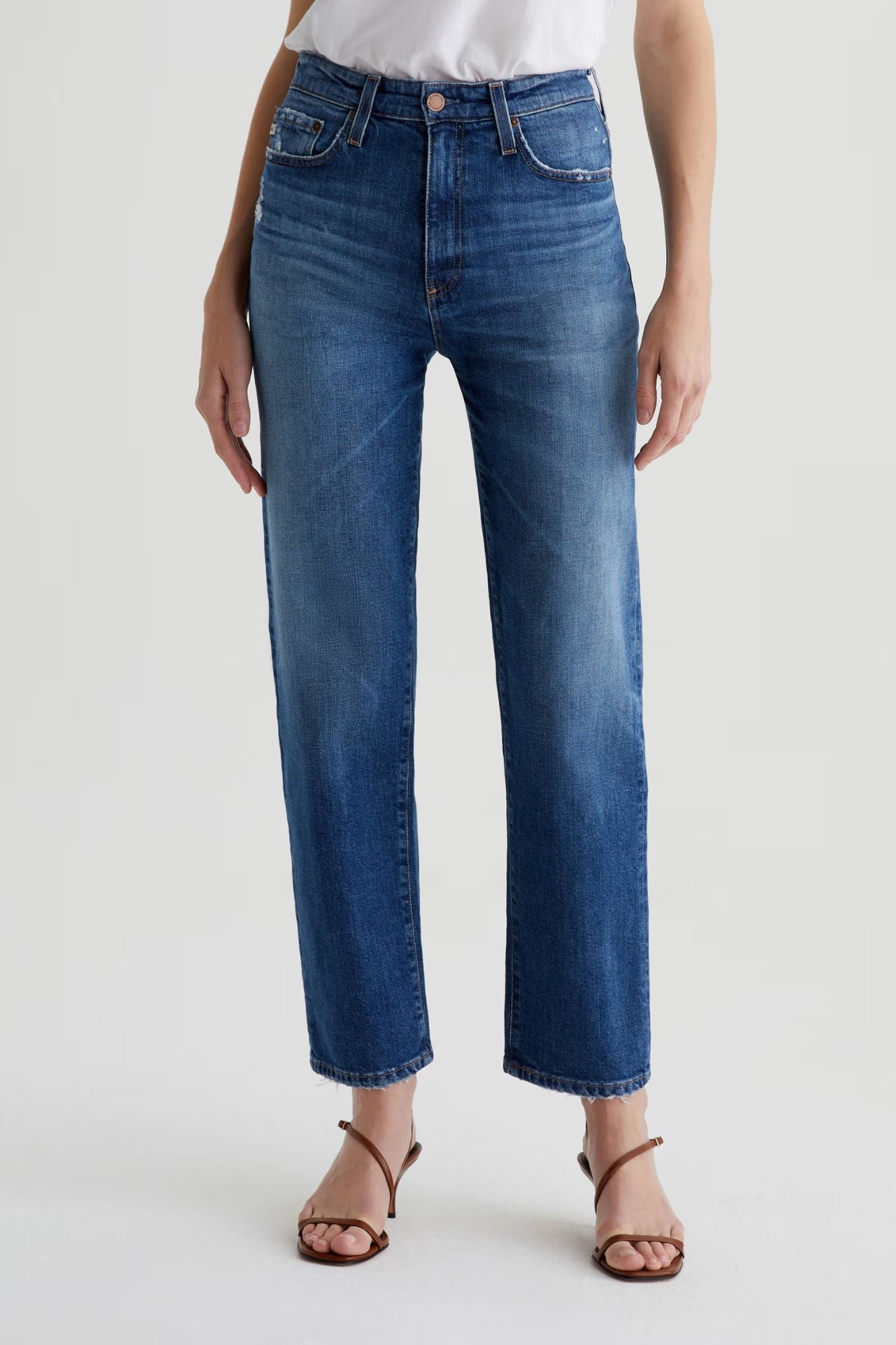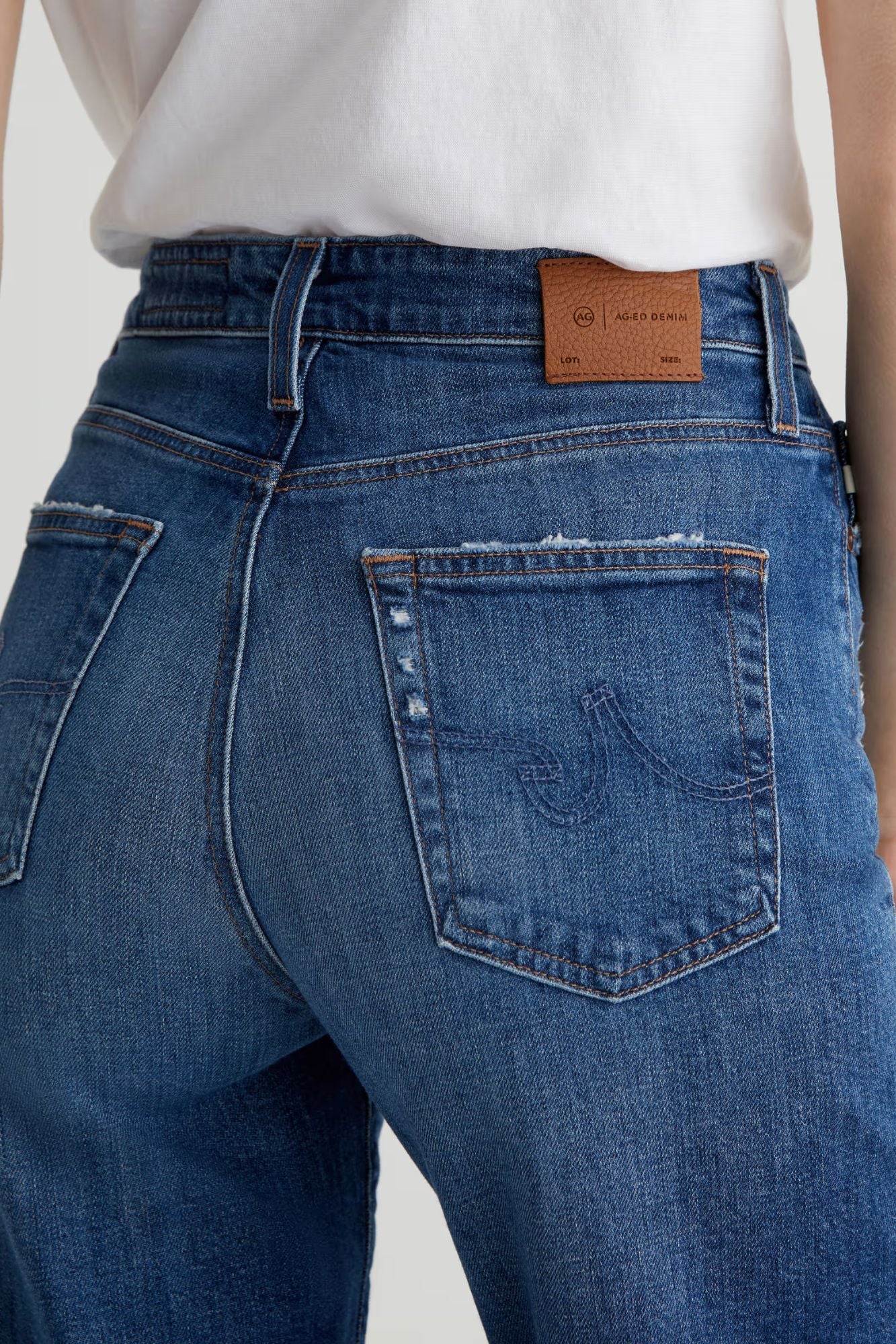 Meet the Rian High-Rise Straight Leg jeans—vintage vibes with a modern twist! These super-high-waisted beauties offer a roomy fit through the hips and legs, ending just at the ankle for a fun, flirty finish. Made from soft, stretchy Italian denim, they've been stonewashed to mimic 14 years of wear, complete with frayed hems and pocket distressing that tell a story. Slip into these for a laid-back look that’s equal parts comfy and cool.
