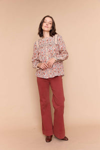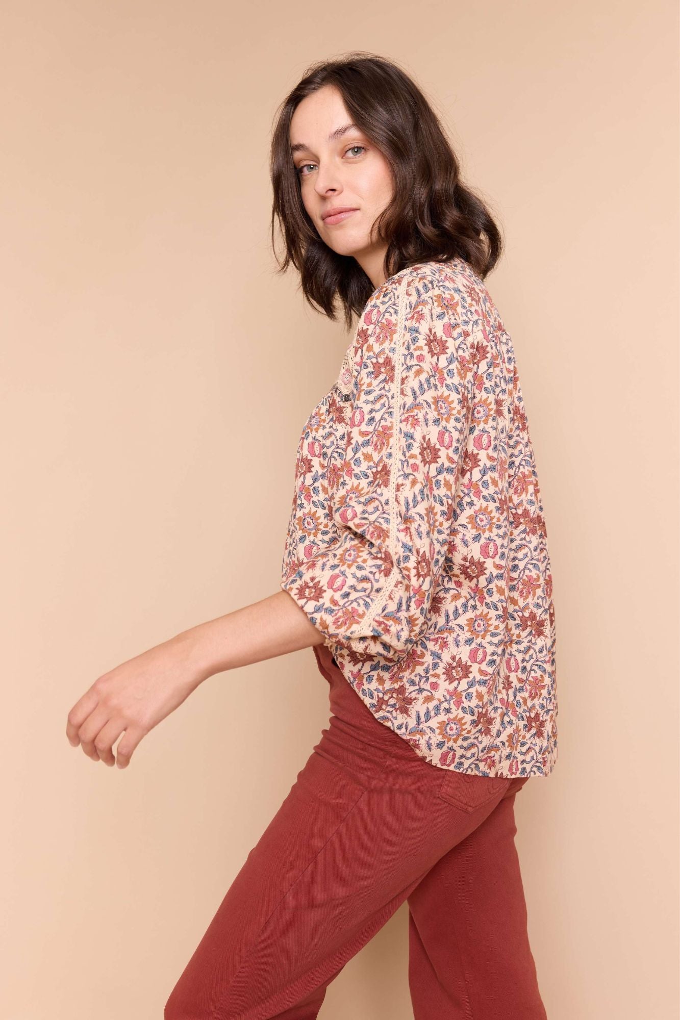 Unleash your wild side with the Ripcord Blouse! This printed blouse brings playful edge to any outfit with its unique quilted chest yoke detailing and delicate lace braid insert on the sleeves. Let your style take flight with the Ripcord Blouse.