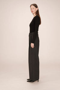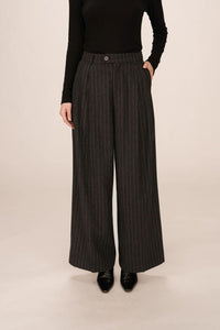 The Senna Pant transforms classic menswear tailoring into a statement of refined style. Crafted from a soft wool blend with subtle stripes and front pleats, these wide-leg trousers offer a fluid yet structured silhouette. Thoughtful touches like the G&M-engraved horn-effect button and slant pockets add timeless sophistication, making the Senna Pant an elegant choice that effortlessly elevates any wardrobe.