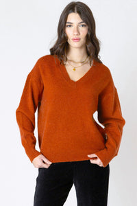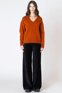 Wrap yourself in cozy charm with this Soft Touch Sweater in a stunning burnt orange hue. Its playful V-neck and dropped shoulders create a relaxed, loose fit that’s perfect for layering or lounging. Embrace warmth and style with a sweater that feels as good as it looks!